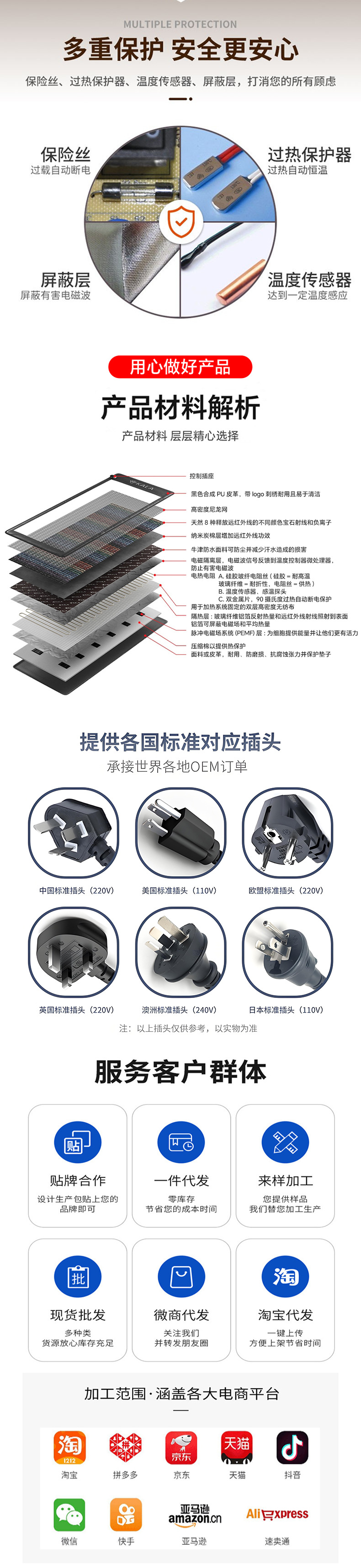 锗石床垫托玛琳发热垫麦饭石玉石加热石墨烯床垫光子能量床垫
