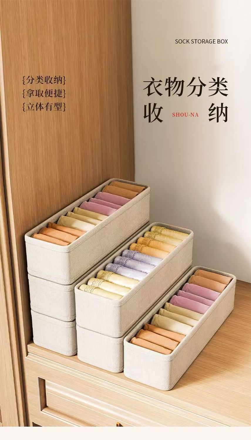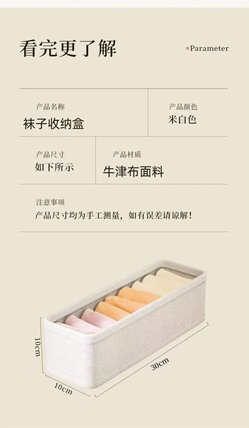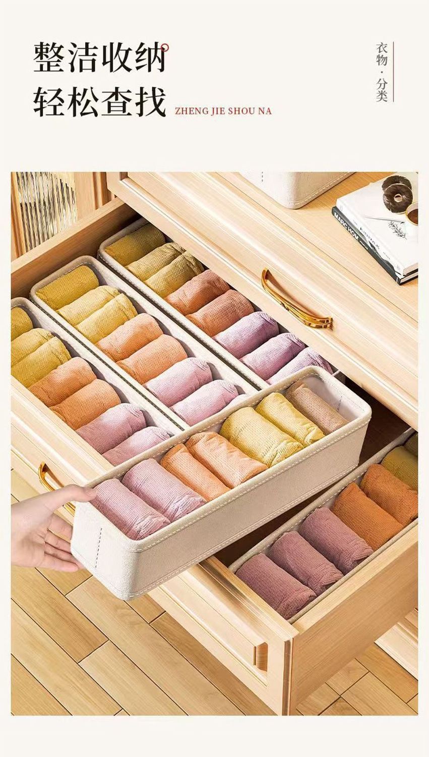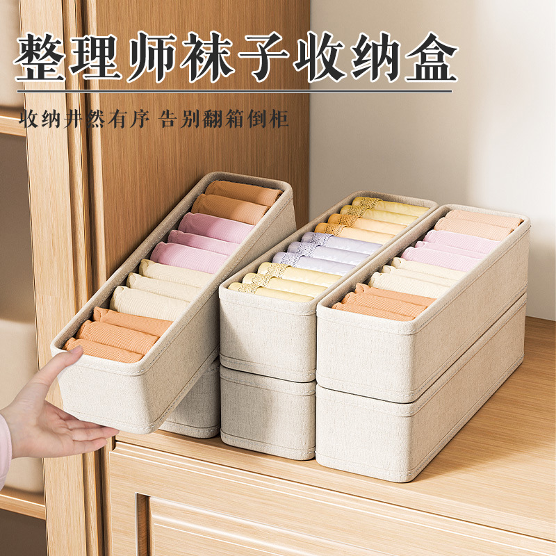 现货天山棉麻袜子盒可折叠可水洗收纳筐家用布艺抽屉式衣柜收纳盒
