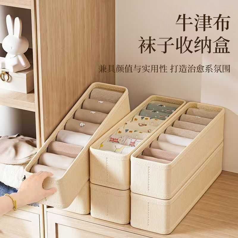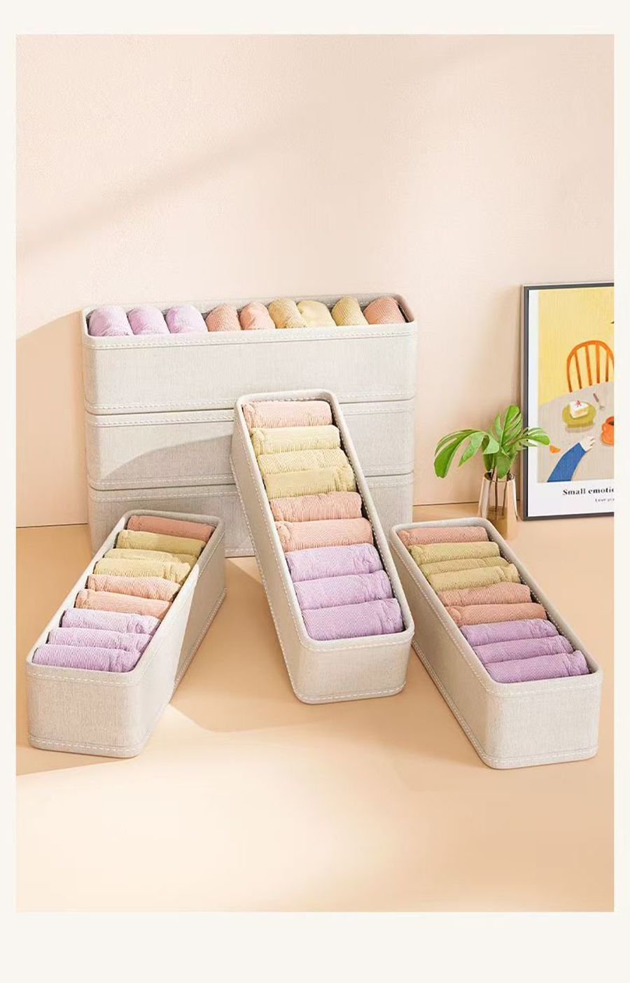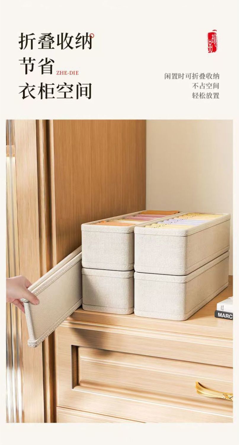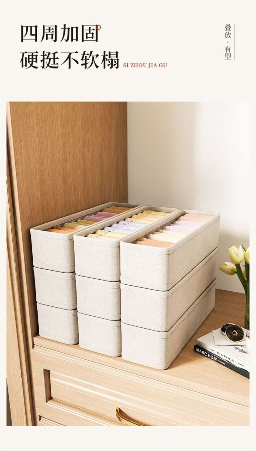 现货天山棉麻袜子盒可折叠可水洗收纳筐家用布艺抽屉式衣柜收纳盒
