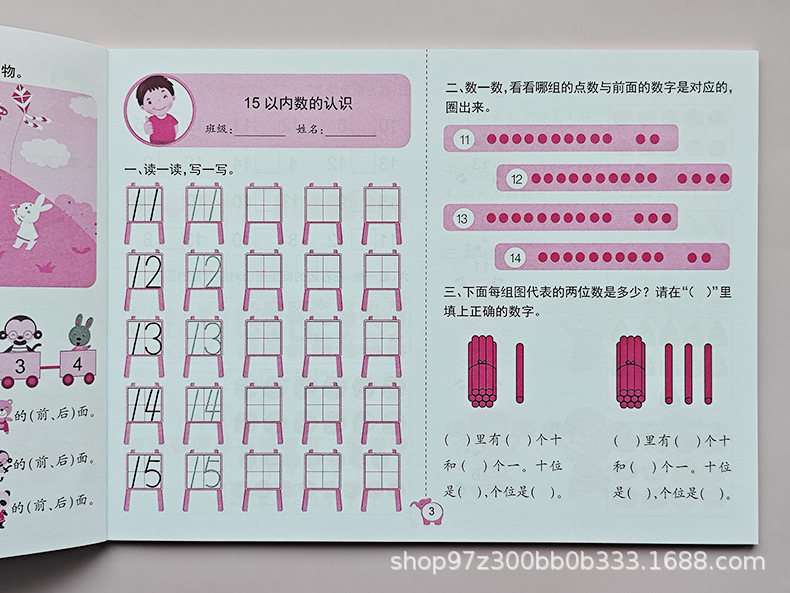 子供向け標準的な習字練習帳、ピンインと漢字の練習帳、幼稚園向け数字0-10、20、100以内の足し算と引き算