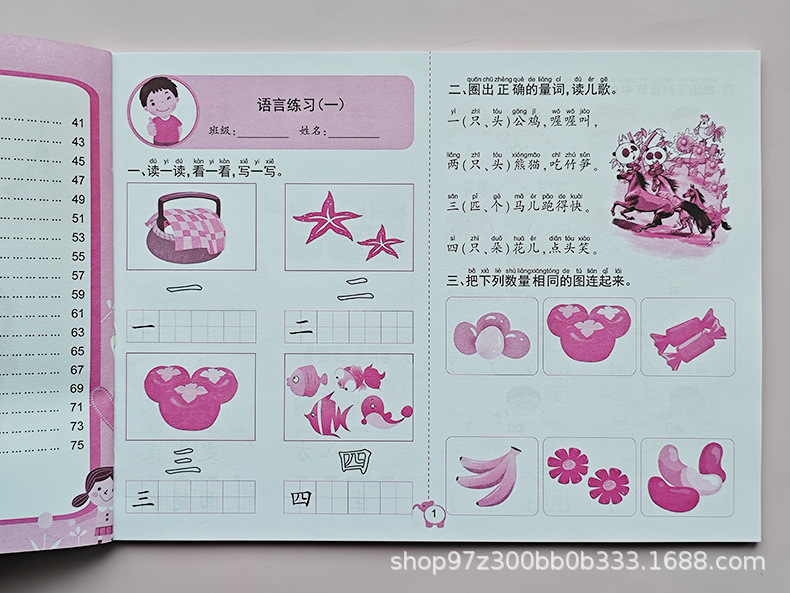 学前優学全方案A B上巻入学準備課程国語数学ピンイン図を見て話す