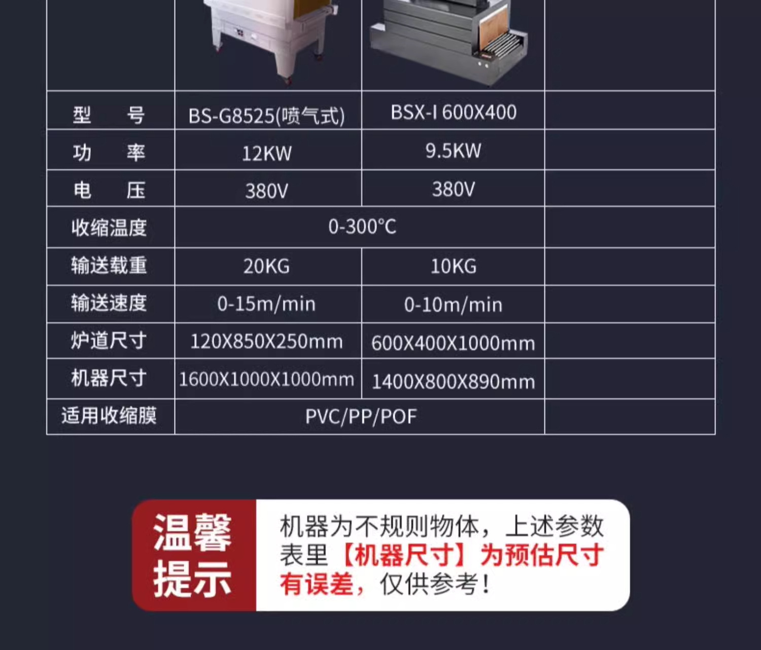 2615シュリンクマシン(オフィスでもご家庭でも使える!),3015 収縮機,3020メッシュシュリンクマシン(自動校正温度、上下温度制御),3020チェーン収縮機(自動校正温度、上下温度制御),400X200mmメッシュベルトシュリンクマシン,400x200mm チェーンシュリンクマシン (耐荷重15KGまで),メッシュコンベアベルトの視覚炉トンネルのアップグレードバージョン(自動校正温度、上限および下限温度制御),アップグレード版!ビジュアルファーネス 4020 チェーンシュリンクマシン,600×300チェーンシュリンク機(炉路幅広),400x350 チェーン収縮機 (高炉レーン付き),ハイエンドバージョン 450x250mm ジェットチェーン収縮機 (耐荷重 20KG),ハイエンドバージョン 450x250 ジェットテフロンメッシュベルト収縮機 (断熱コンベアベルト),BS-6040 チェーンシュリンクマシン,視覚的に拡張された炉トンネル 4020 チェーン収縮機 (炉トンネルの長さが短く、収縮効果が優れています),ハイエンドバージョン 450x350mm ジェットチェーン収縮機 (耐荷重 30KG),FM5540 2in1シュリンク包装機,4030 シール、カット、収縮機 (冷却システム、より美しい収縮効果、統合されたパッケージを備えています),4030 シール・カット・シュリンク機(一体包装),ハイエンドバージョン 6535 ジェットチェーン収縮機,アップグレードバージョン 5040 タイプ (PVC POF PE フィルムを使用可能、冷却塔と延長炉トンネルが付属),8525ジェット,4020チェーン収縮機,【BS-G4525ジェット】,FQL—4030 半自動シールおよび切断機 + BS4020 ハイテーブル熱収縮機,450Lシングルシール&カットマシン,450Lシール・カット機+4020Lシュリンク機(炉路1.2m),450Lシール・カット機+4522シュリンク機(炉路1.5m),450Lシール・カット機+4525(周波数変換)シュリンク機(炉路1.5m),550Lシール・カット機+5530シュリンク機(炉路1.5m),750Lシール・カット機+7535シュリンク機(炉路1.8m),BF450 サイドシール + 4020L 収縮機 (炉チャンネル 1.2m),7540カフスラミネート機(シュリンク機を除く),9040カフスラミネート機(シュリンク機を除く),4525L可変周波数透明炉熱収縮機,5030L可変周波数透明炉熱収縮機