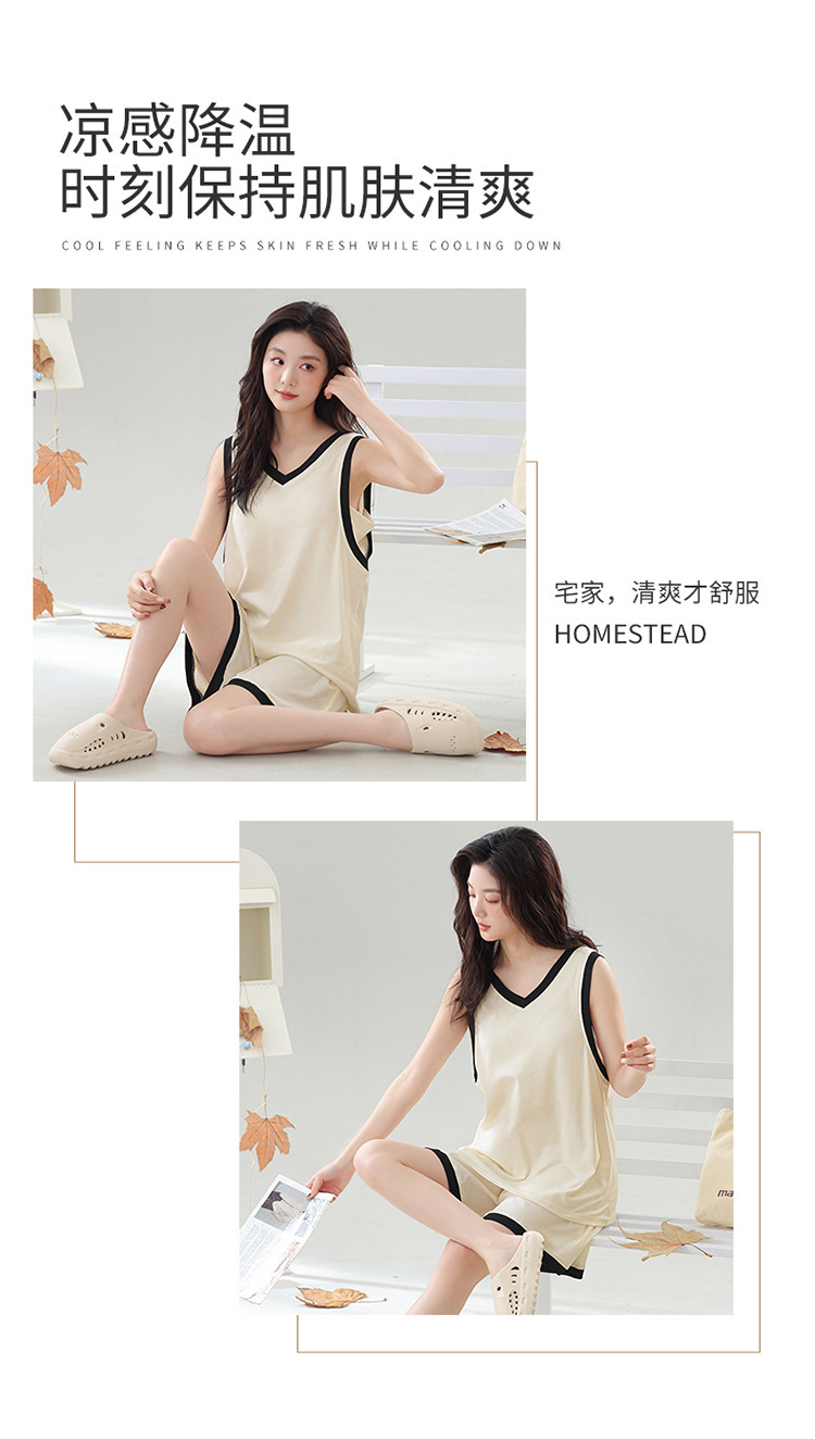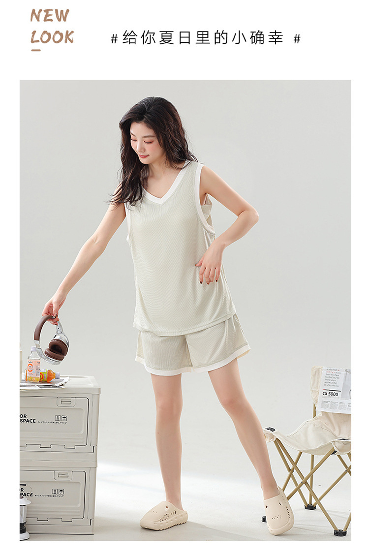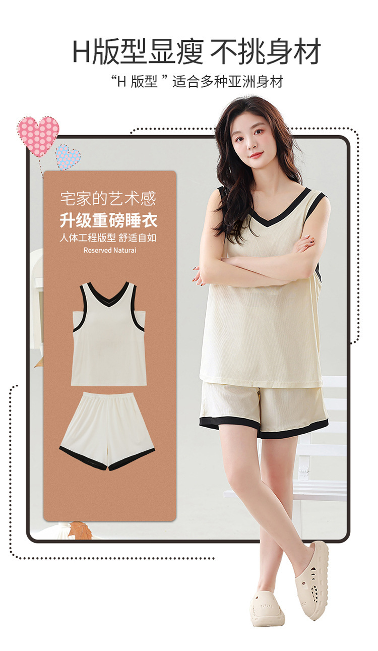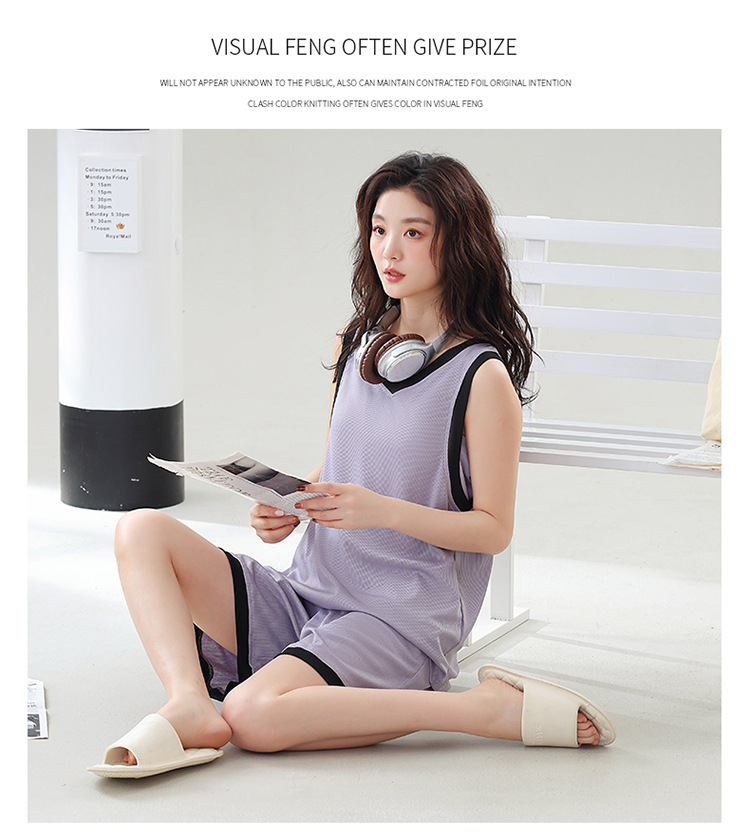 氷の糸のねじのパジャマの女性の大きいサイズの夏は胸のパッドのベストの袖なしの簡単なカジュアルな甘い美人の家庭服のスーツを持ちます。
