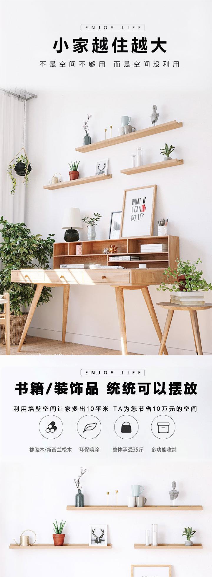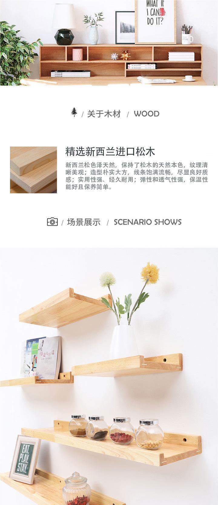 実木ネイルフレーム一字仕切り壁に穴を開けない壁掛棚テレビ背景壁装飾