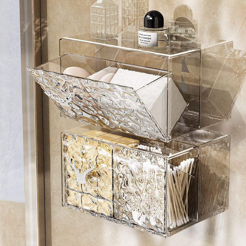 化粧綿収納ボックス壁掛け透明防塵仕切りトイレ口紅皮筋整理ボックス浴室綿棒ボックス