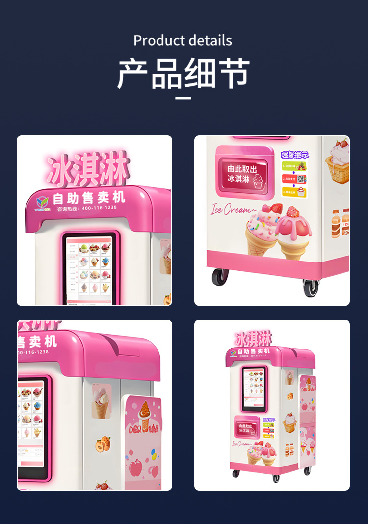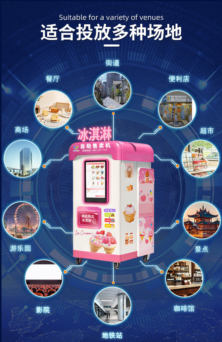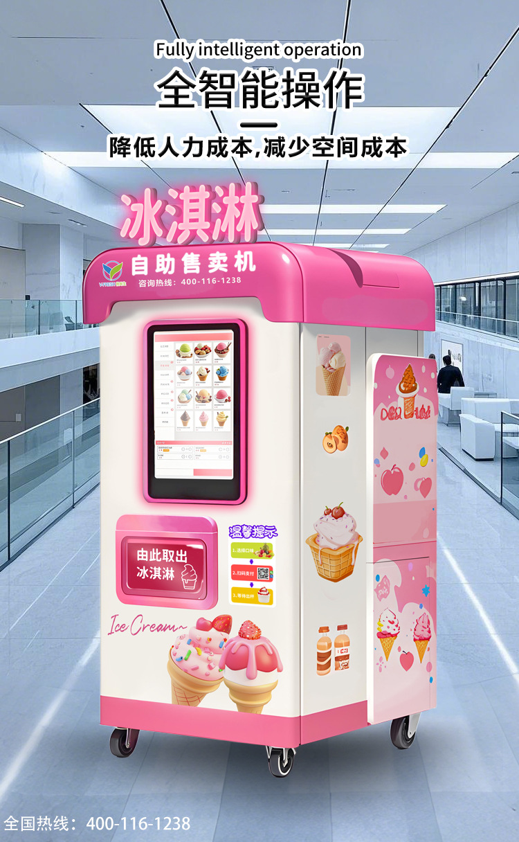 起業用インテリジェント全自動アイスクリームマシン、商業用屋台アイスクリーム、セルフサービスアイスクリーム、無人販売機
