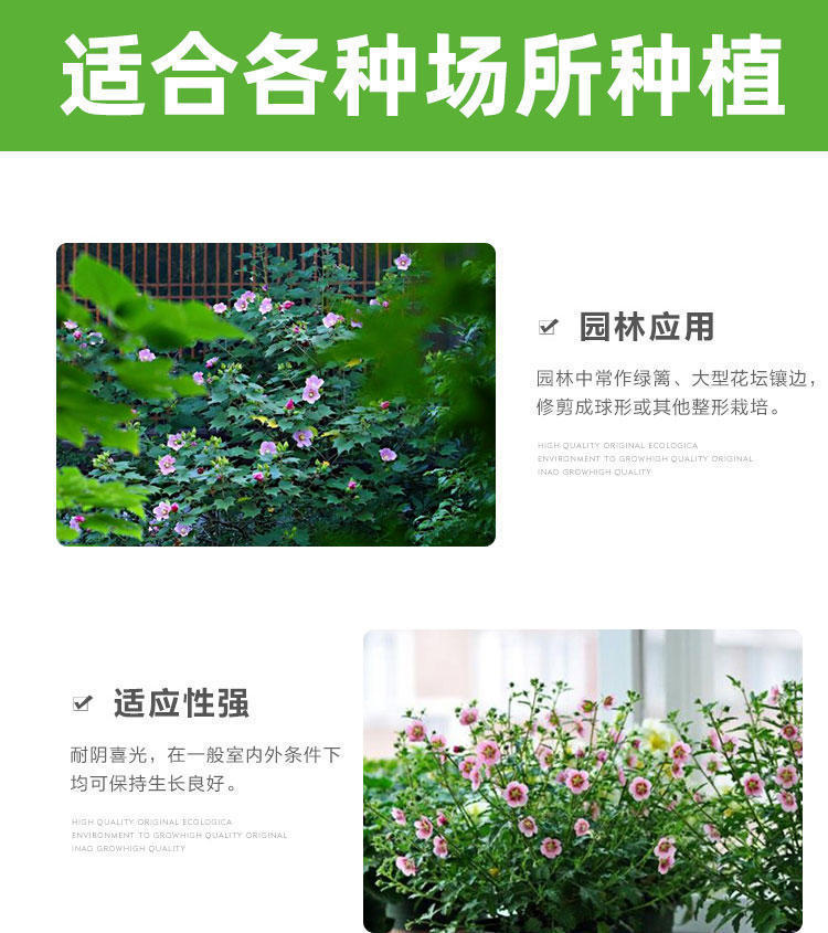 緑化苗木、八重咲きハイビスカス苗、鉢植えハイビスカス苗、屋内外中庭、耐寒性・耐陰性植物工学