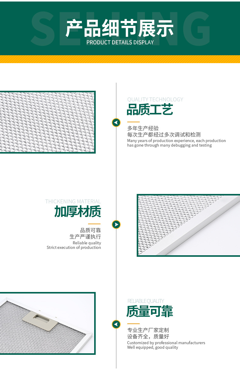 レンジフード濾過網引き式ステンレス防油板可折洗濾過アルミ網吸油機部品メーカー