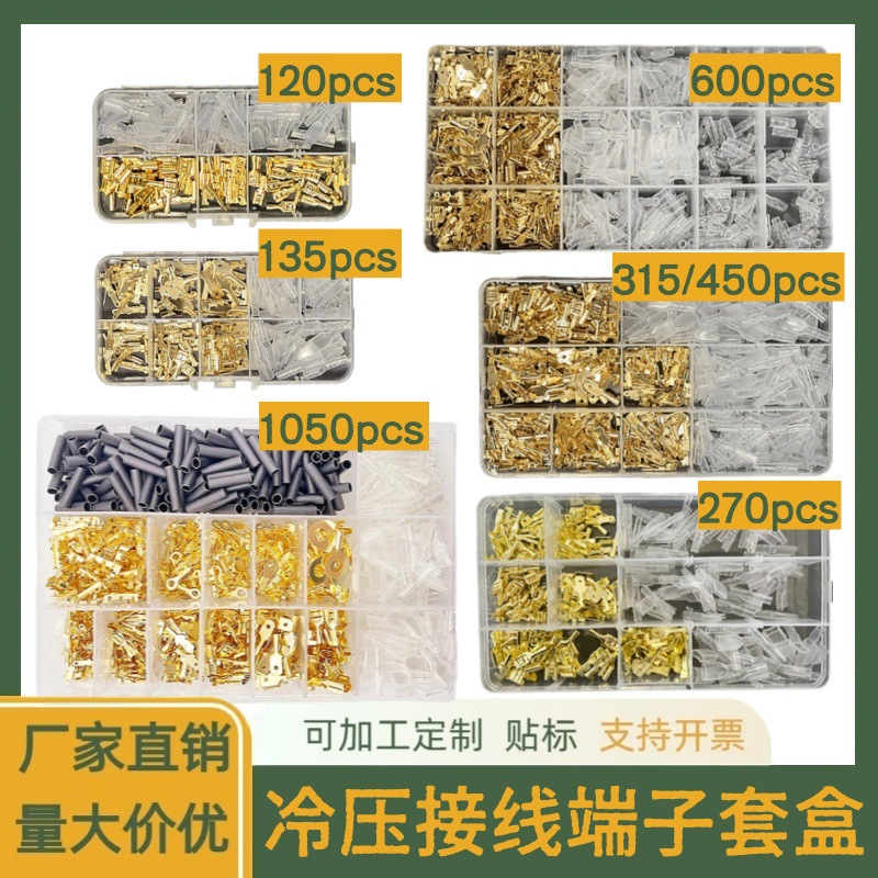 跨境货源120pcs/135pcs/ 270pcs/315pcs插簧插片端子配护套盒装钢