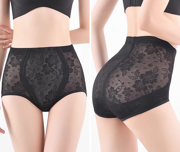高腰で腹を収めてお尻を上げて下着を作ります。