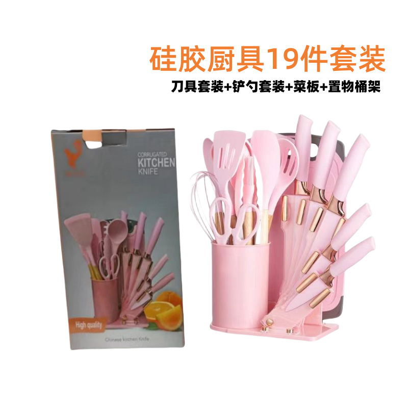 クロスボーダー木柄シリカゲル調理器具セット19点セット