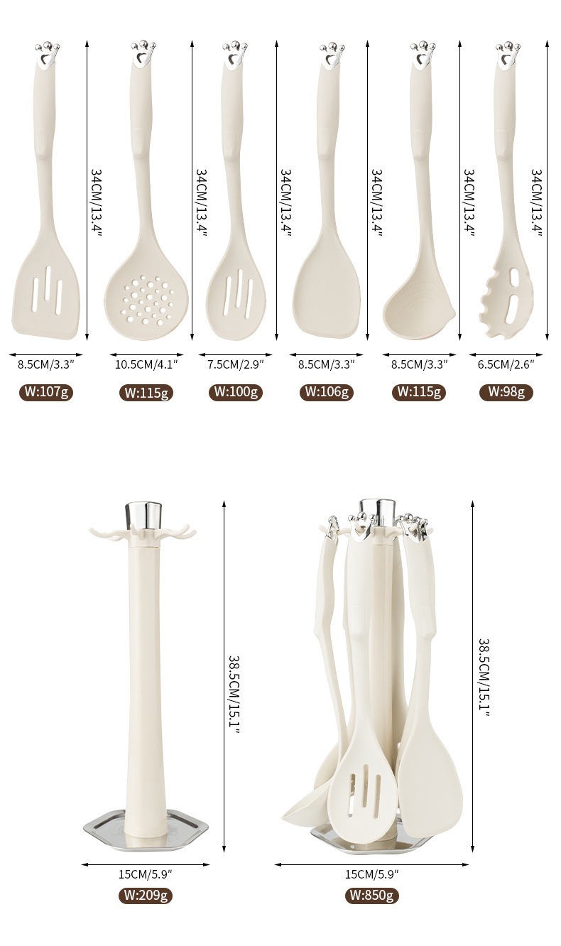 国境を越えた新型シリカゲル調理器具7点セット食品級耐高温調理シャベルスプーンすくい垣セット台所用品現在