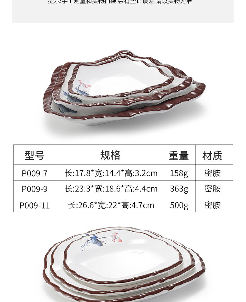 メラミンプレートレストラン農家皿クリエイティブ不規則なスーププレートホテル冷菜プレート特殊形状プレートプラスチック食器