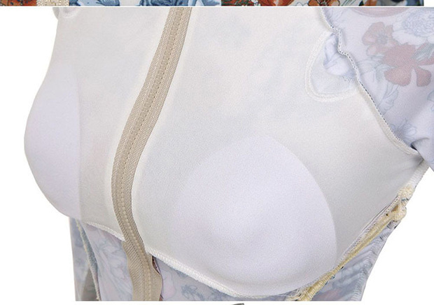 胸が小さい女性向けのクロスボーダー新作グレーワンピースレトロ水着、お腹をカバーしてスリムに見える、長袖日焼け止め温泉水着