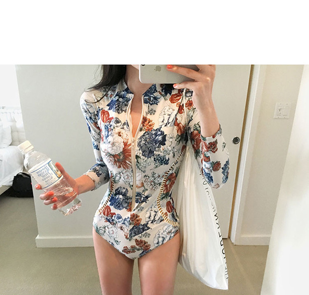 小红书网红同款长袖防晒潜水冲浪三角沙滩温泉度假拍照连体泳衣