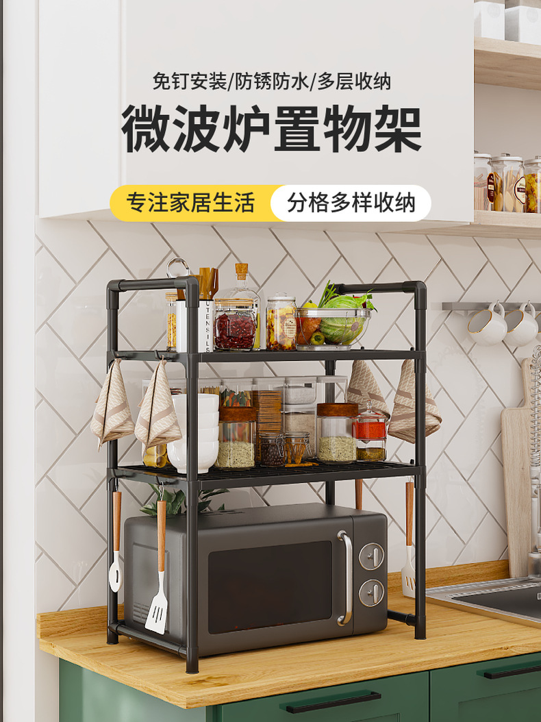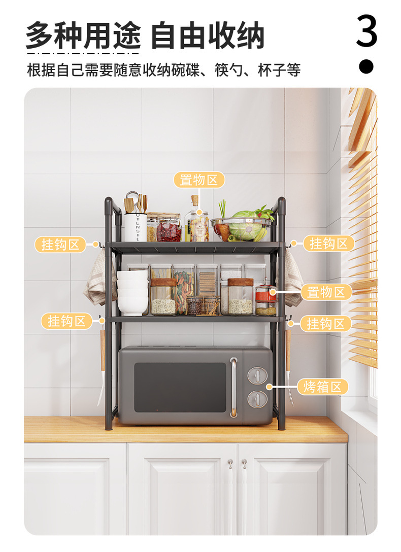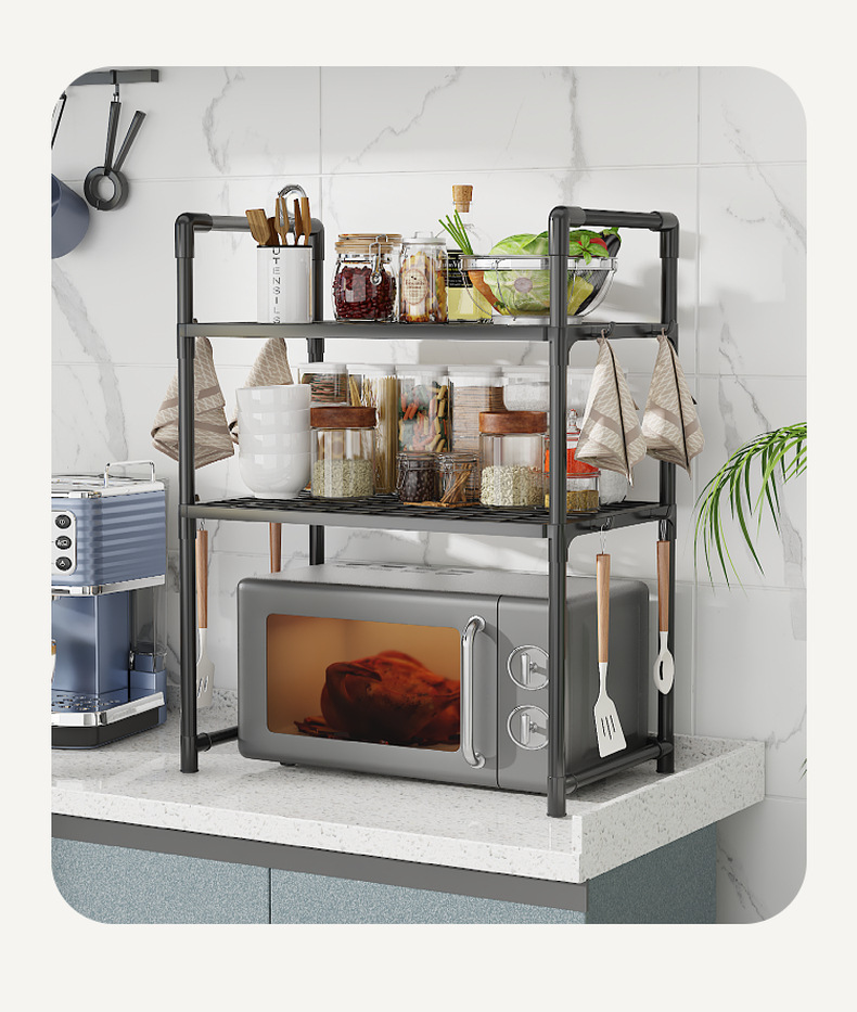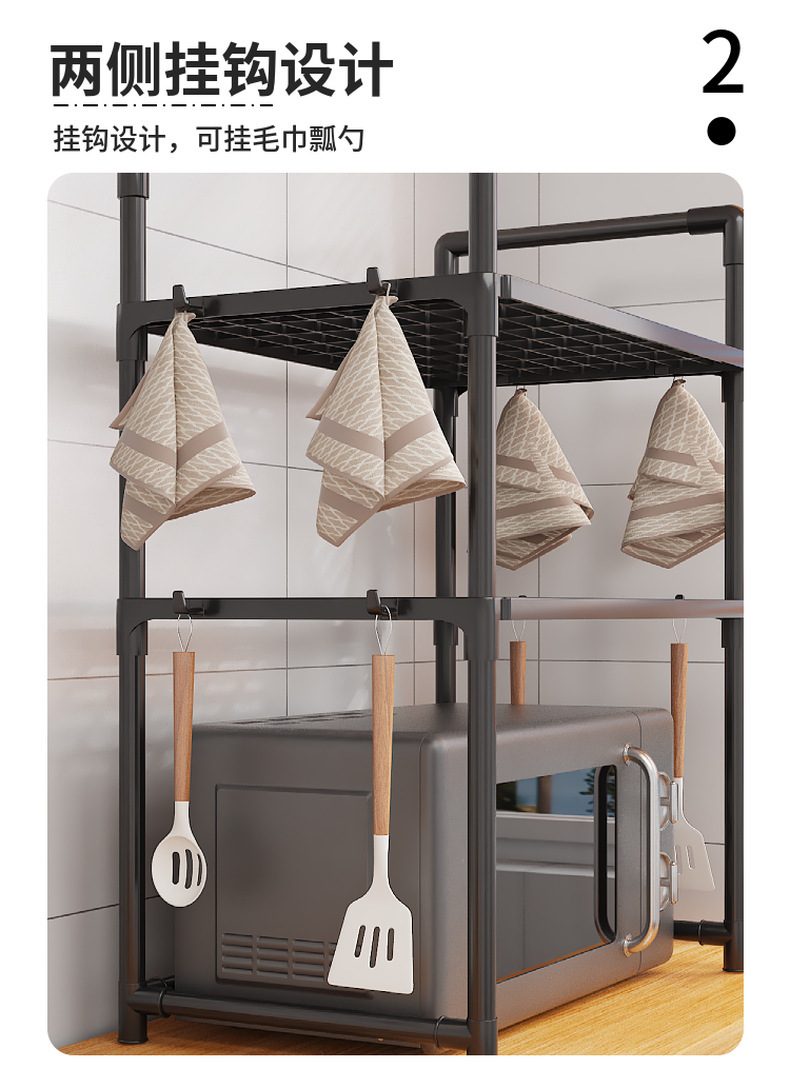 クロスボーダー電子レンジラック厚みのあるオーブンパンマシン収納ラック二層キッチンアームレストフック調味料収納ラック