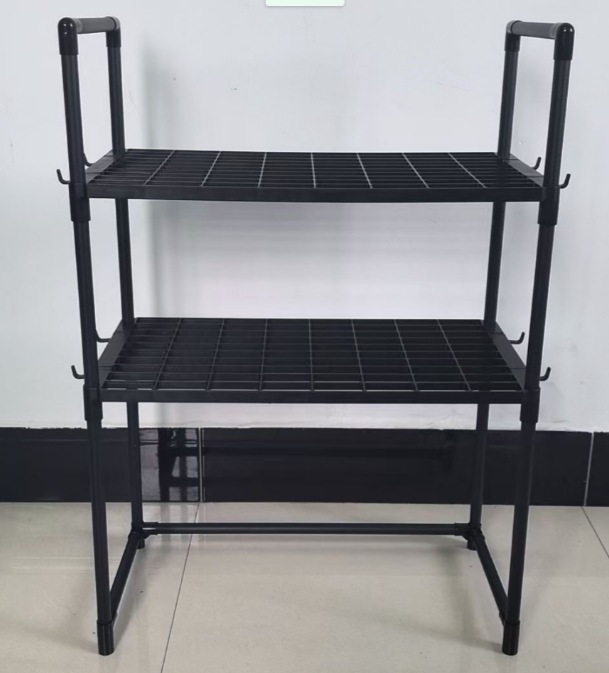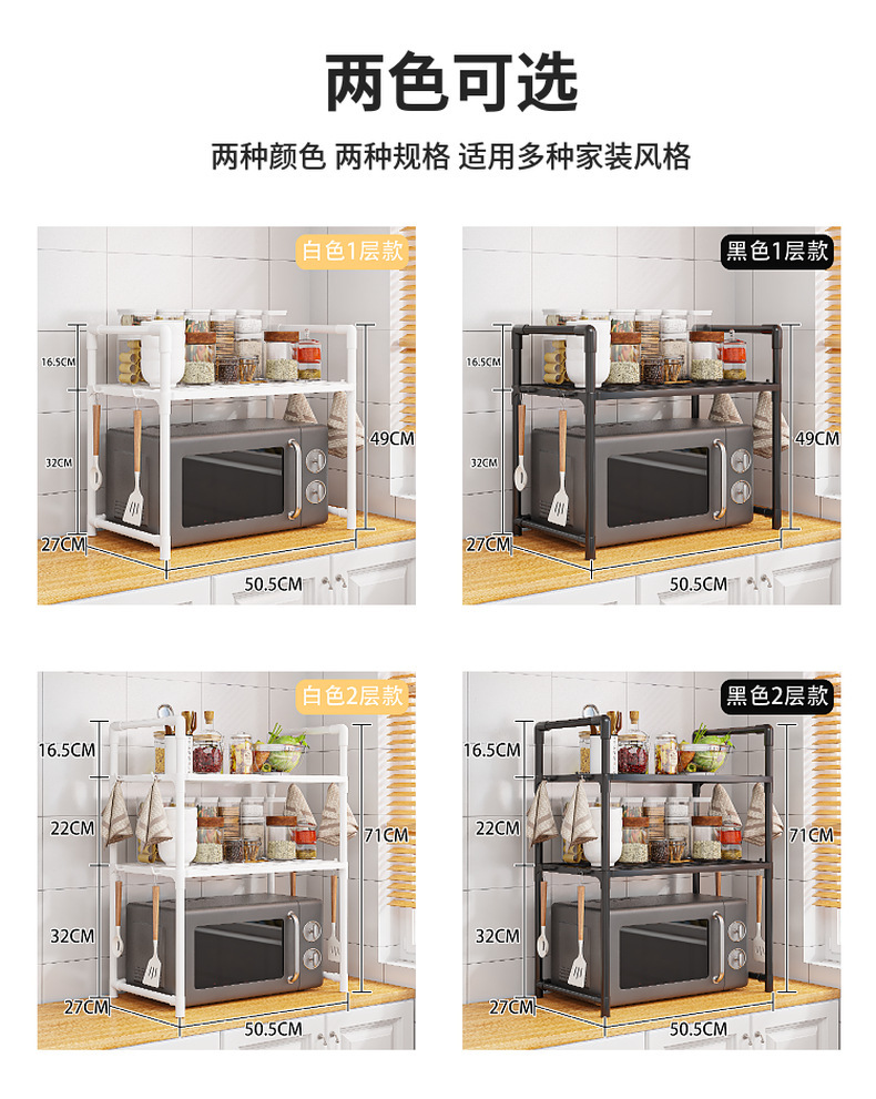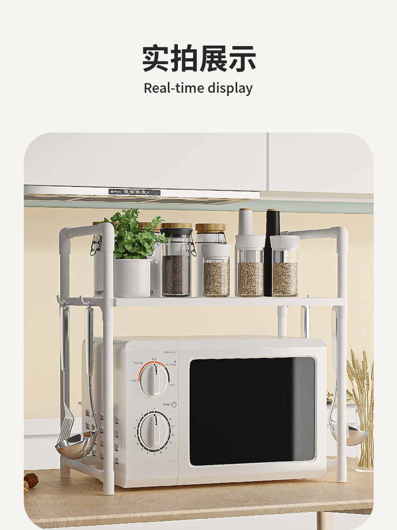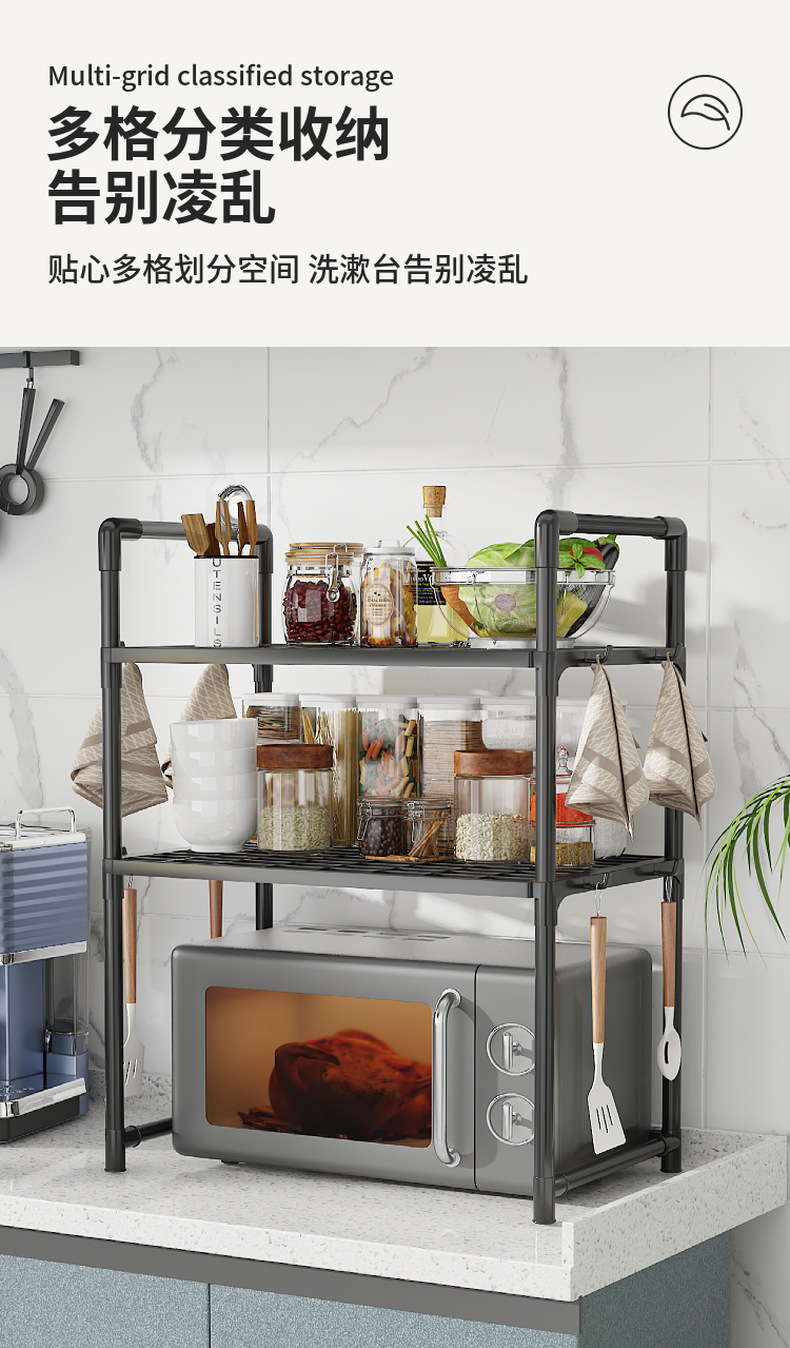 クロスボーダー電子レンジラック厚みのあるオーブンパンマシン収納ラック二層キッチンアームレストフック調味料収納ラック