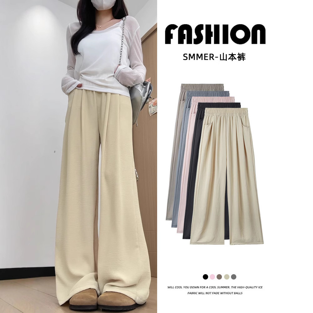 ミルク杏氷糸広脚ズボン女性夏2025新日系薄手ストレートカジュアル小柄山本ズボン