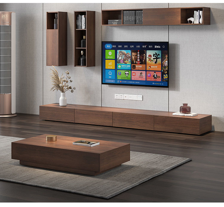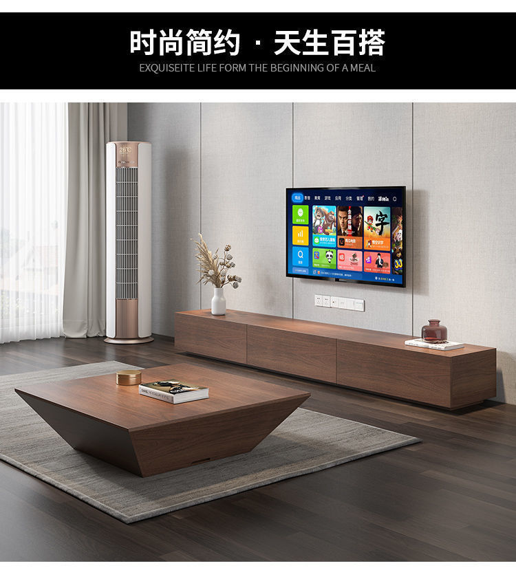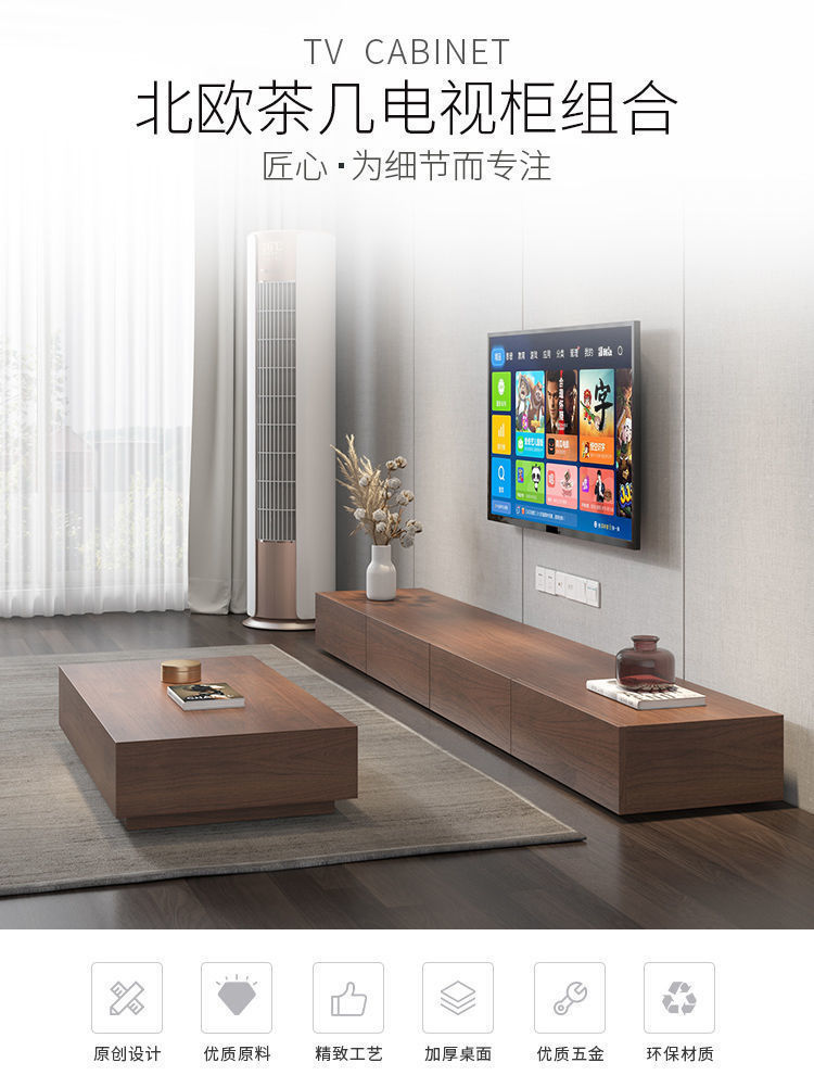北欧テレビキャビネット茶の組み合わせセット現代シンプルな中小型リビングルームの新しい家具胡桃色地キャビネット