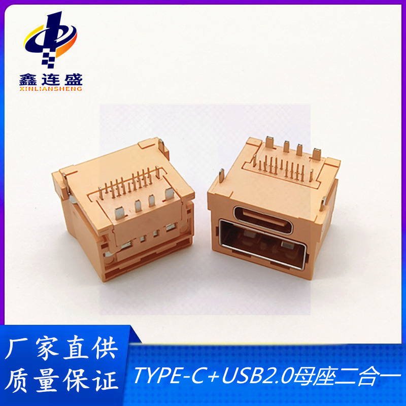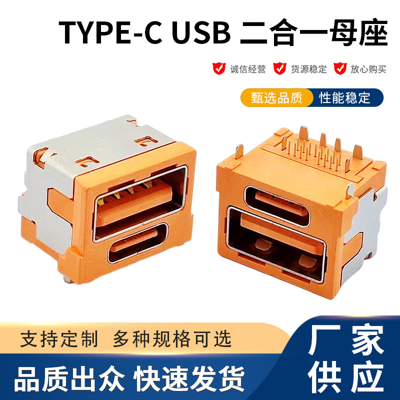 厂家直发TYPE-C USB 二合一双层母座A口+C口双层14P快充插座