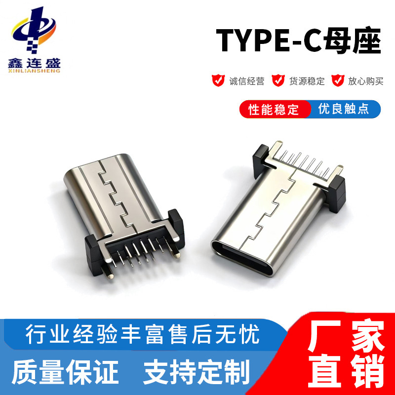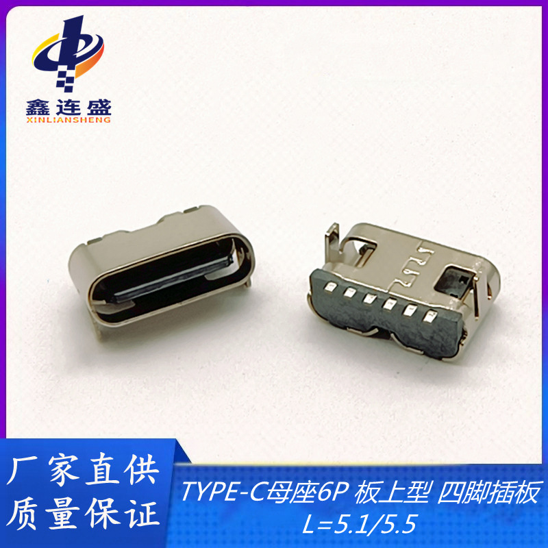 USB TYPE-C母座6pボード上型四脚ボードL = 5.1/5.5/6.0端子パッチSMT