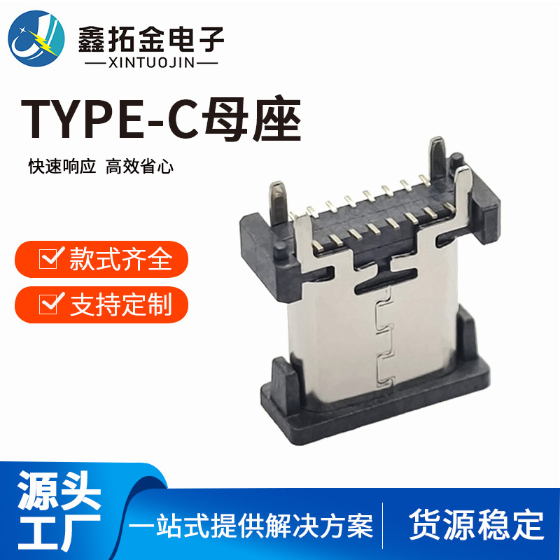Type-C 24PIN卧式前插后贴 USB3.1 SMT贴片耐高温 四脚插板