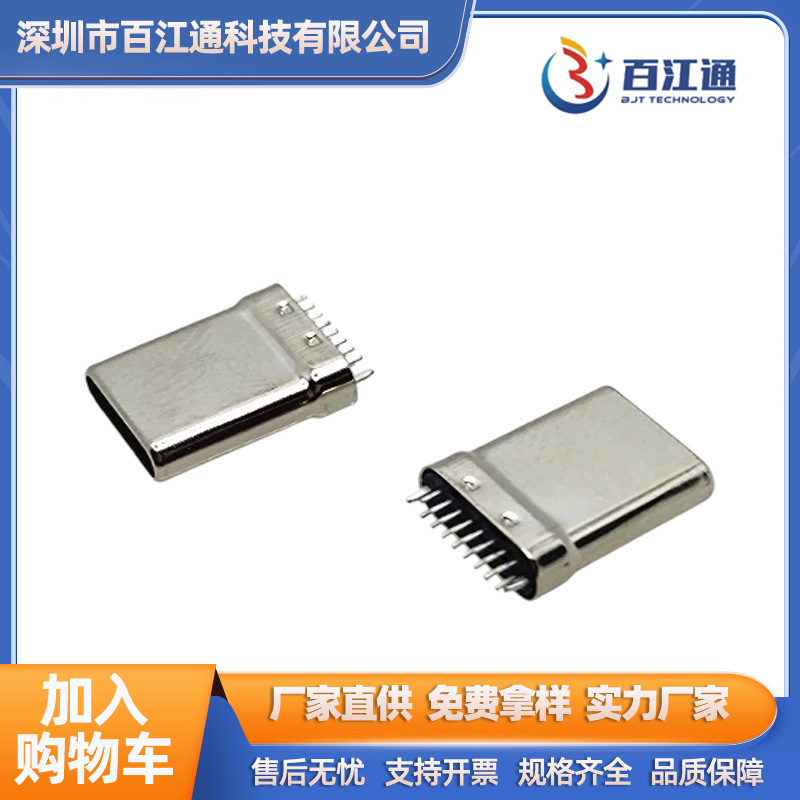 TYPE-C 16P直立式直插公头两脚插板公头拉伸款typec公头USB充电头