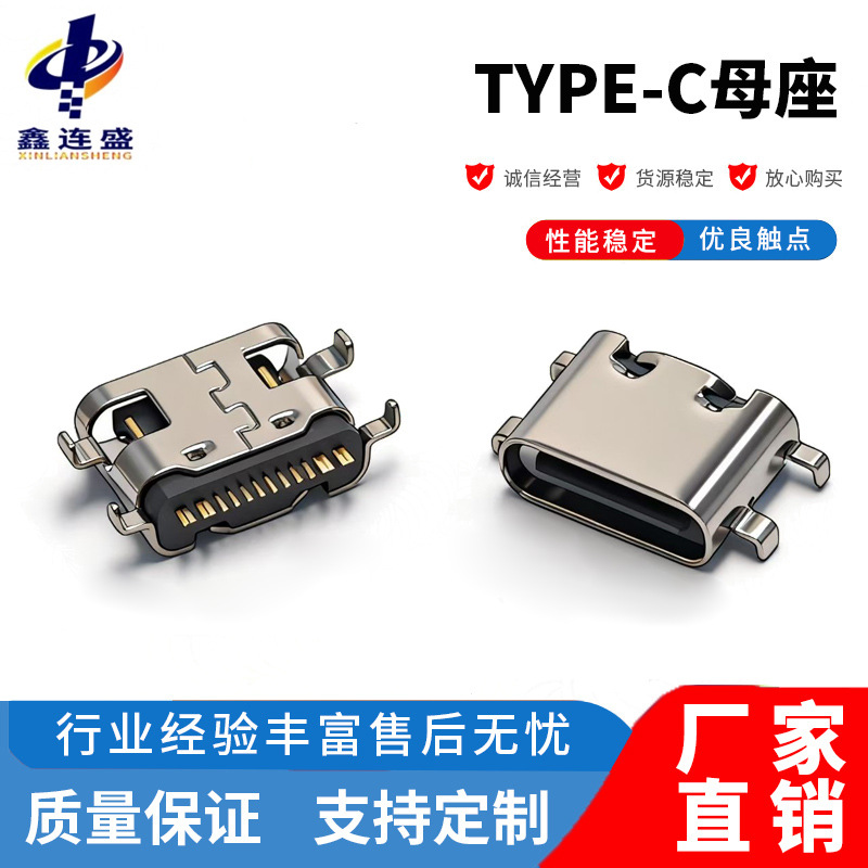 TYPE-C母座16p沈板0.8/1.0/1.2/1.6/2.1/2.4四脚ボードSMT三型