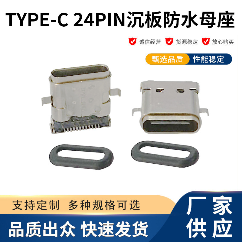 TYPE-C24pin沉板防水母座前插后贴四脚插板双包壳有柱双壳结构