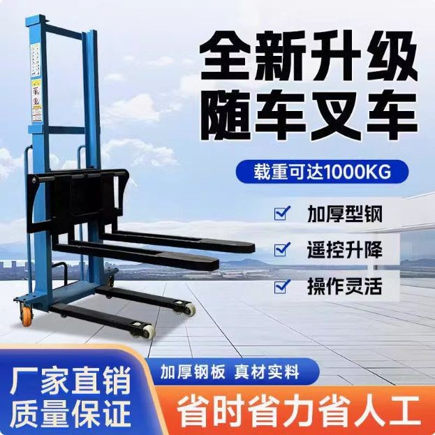 電動フォークリフト2トン1トン小型手動昇降半電動油圧運搬車昇降式積み降ろしハンドプッシュスタッカー