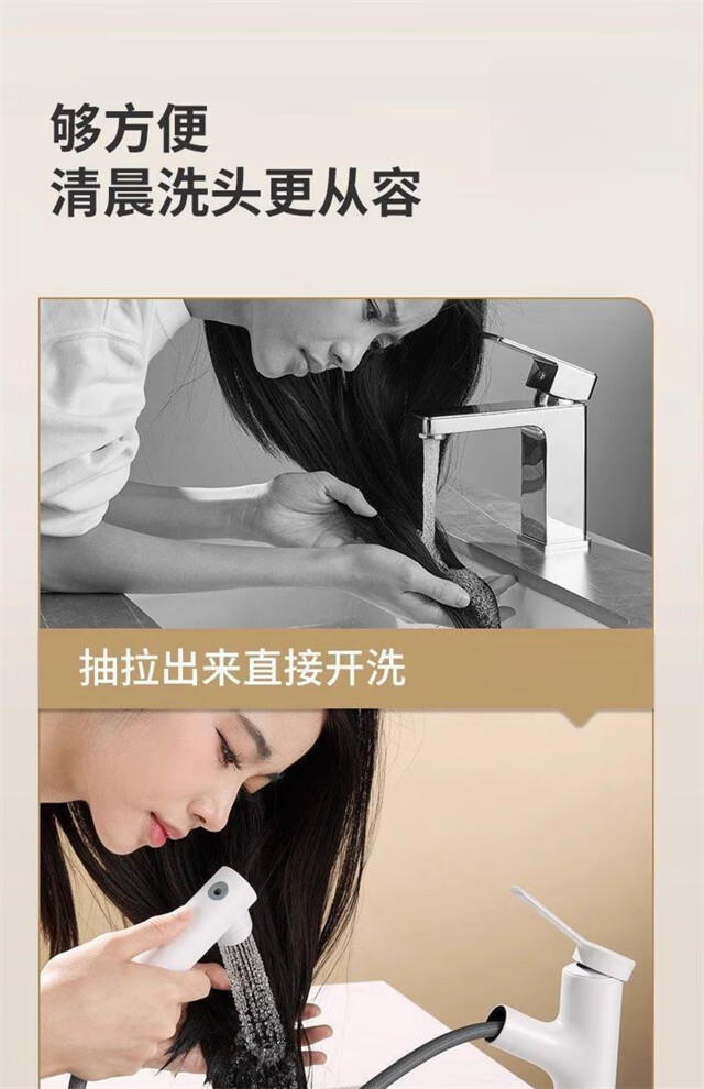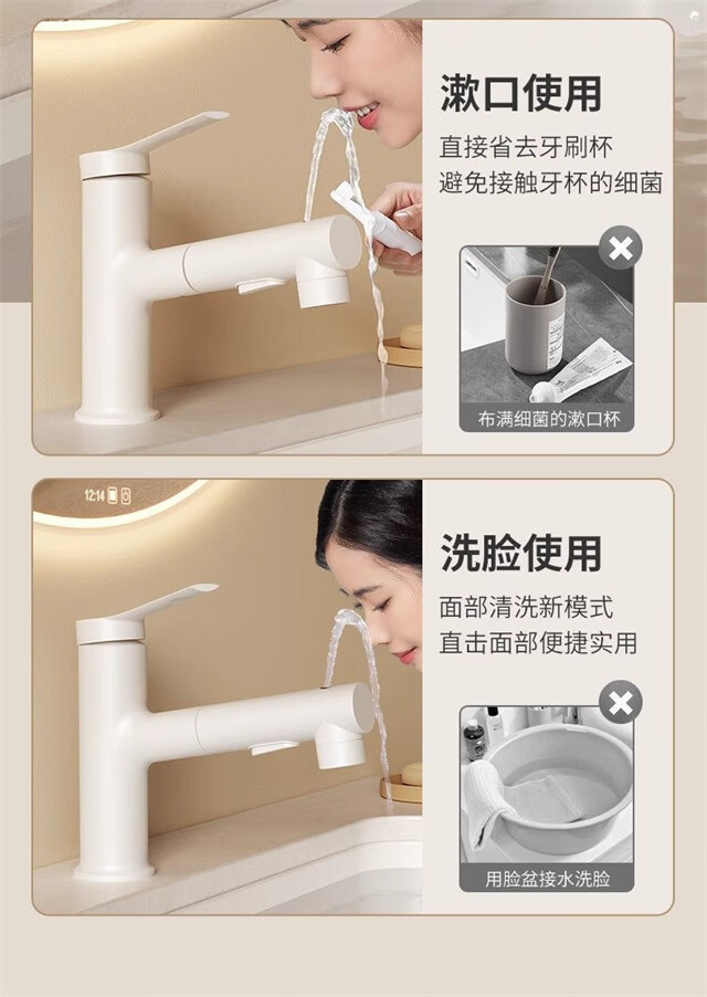 面盆抽拉式龙头洗漱口台盆冷热水浴室卫生间洗手盆白色水龙头