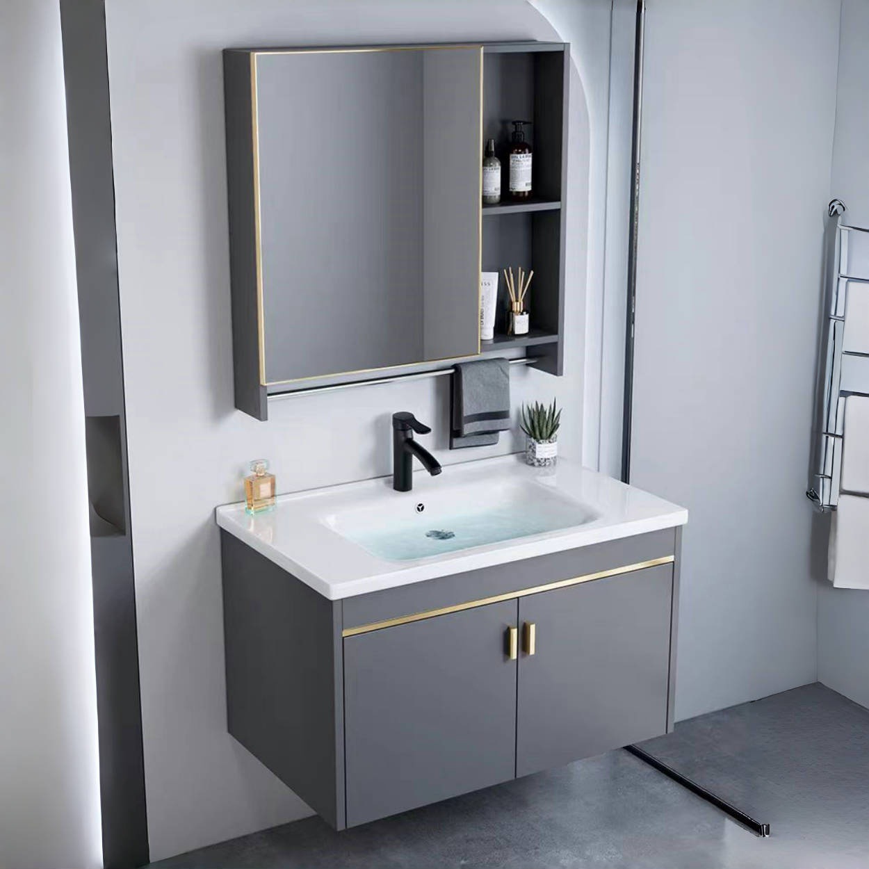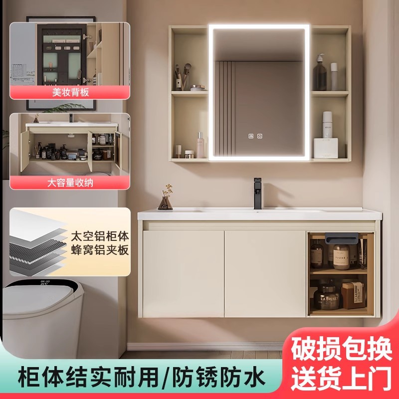 壁掛け小型ユニットシンプルな厚みのあるスペースハニカムアルミニウム合金バスルームキャビネット組み合わせバスルームセラミック洗面台