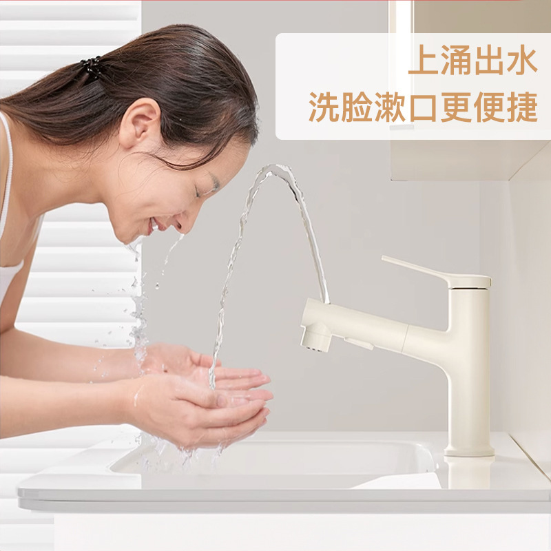 クリーム白冷熱蛇口洗面器昇降吸引式洗面器浴室洗面器蛇口