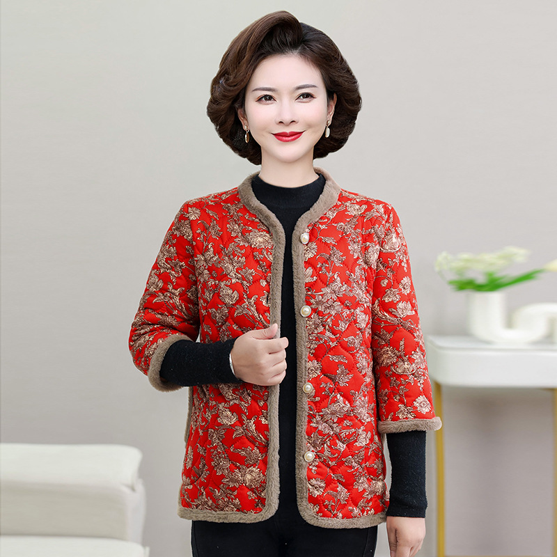 2025春のお母さんは新型の毛を着ます。コートの新しい中国式の高級ボタンのカーディガンの中で老年の婦人服の卸売りです。