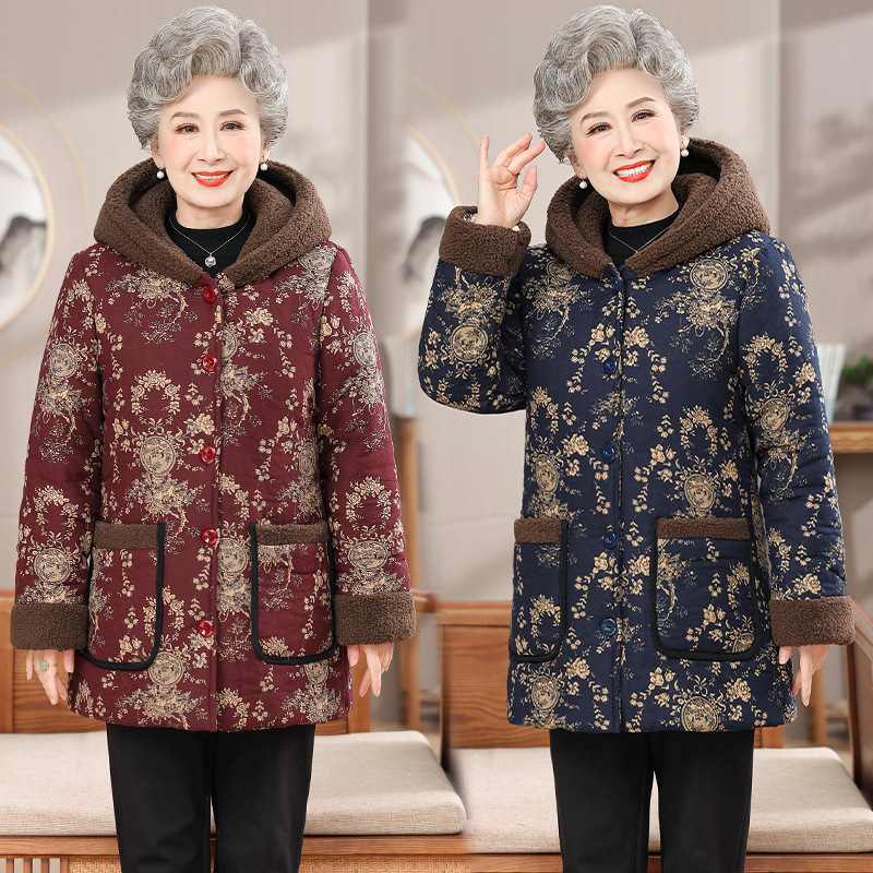 綿の服の女性のファッションのお母さんは厚い綿入れの保温の綿入れの上着の老人を詰めます。