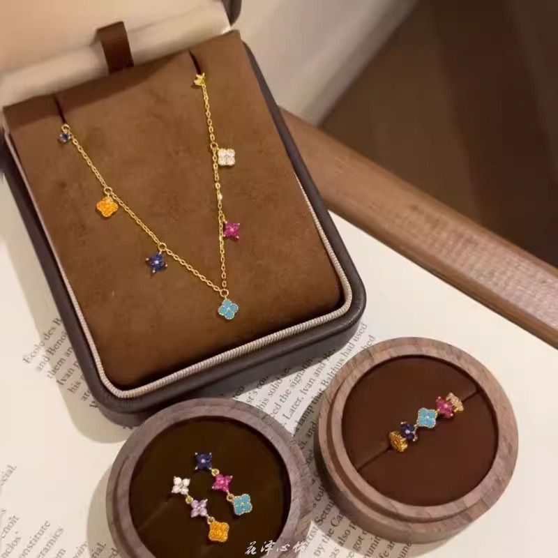 不小心闯入"莫奈花园“超美的五彩缤纷四叶花ins系列耳钉耳夹项链
