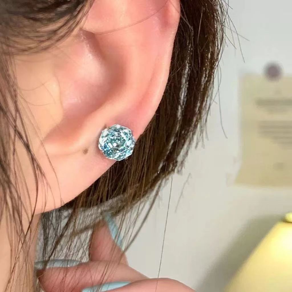 「小さなキャンディー」カラードリルジルコンピアス925銀針ミニフラッシュドリル五色フラッシュピアス
