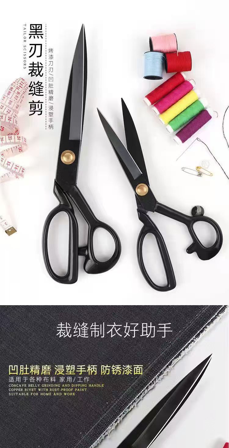 多機能家庭用はさみマンガン鋼テーラーはさみ大型厚みのある縫製はさみ黒炭素鋼衣類はさみ