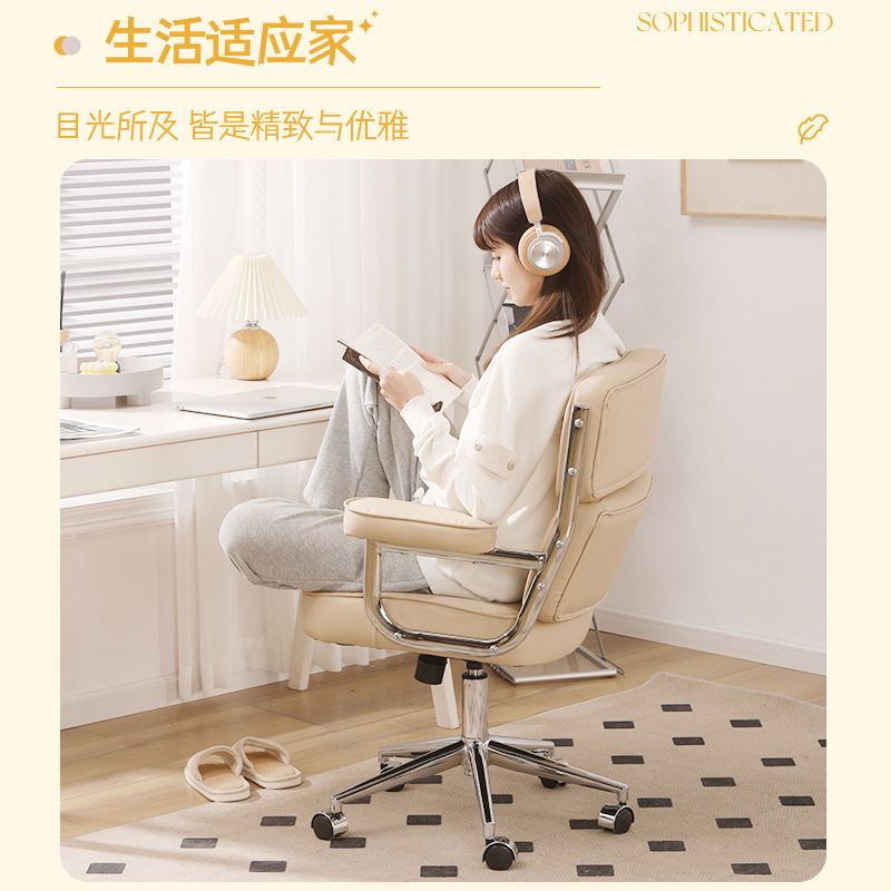 クリーム色の本の机と椅子のコンピュータの椅子の家庭用の快適で軽いレジャーのオフィスの椅子は長い間寝室の化粧の書斎の椅子に座ります。