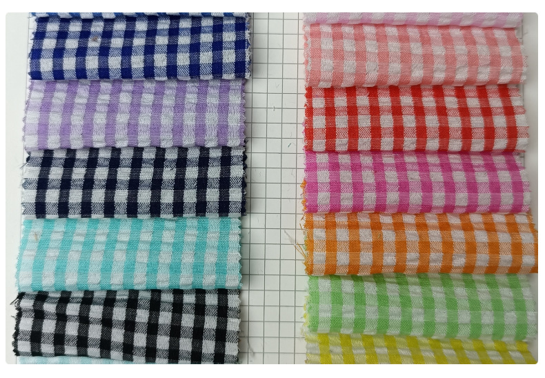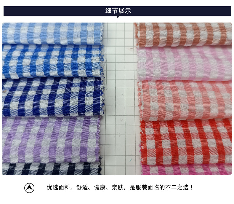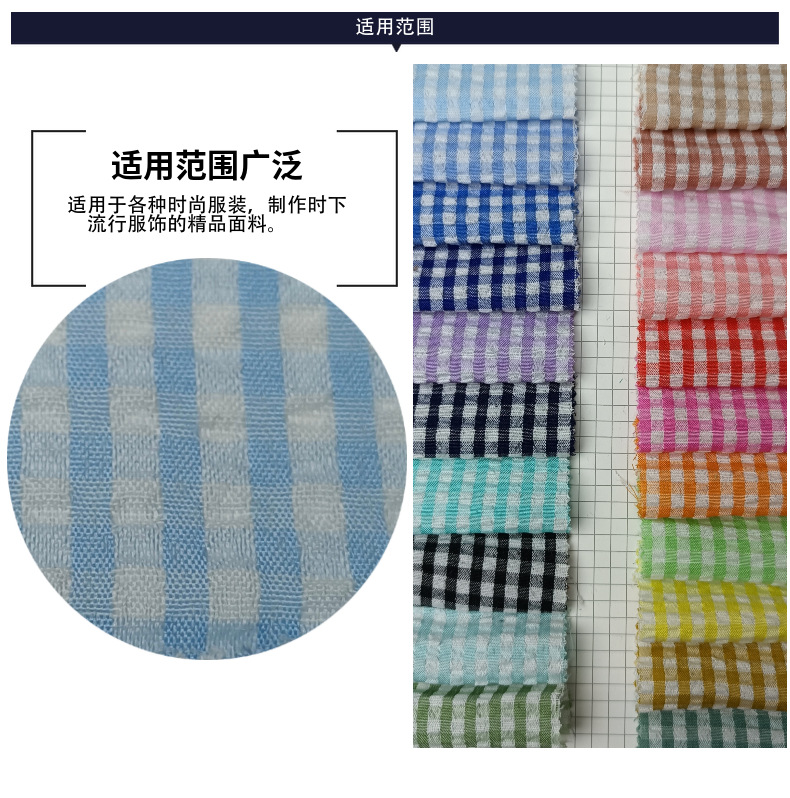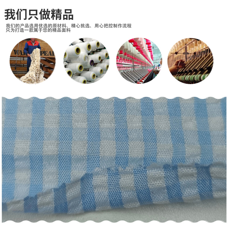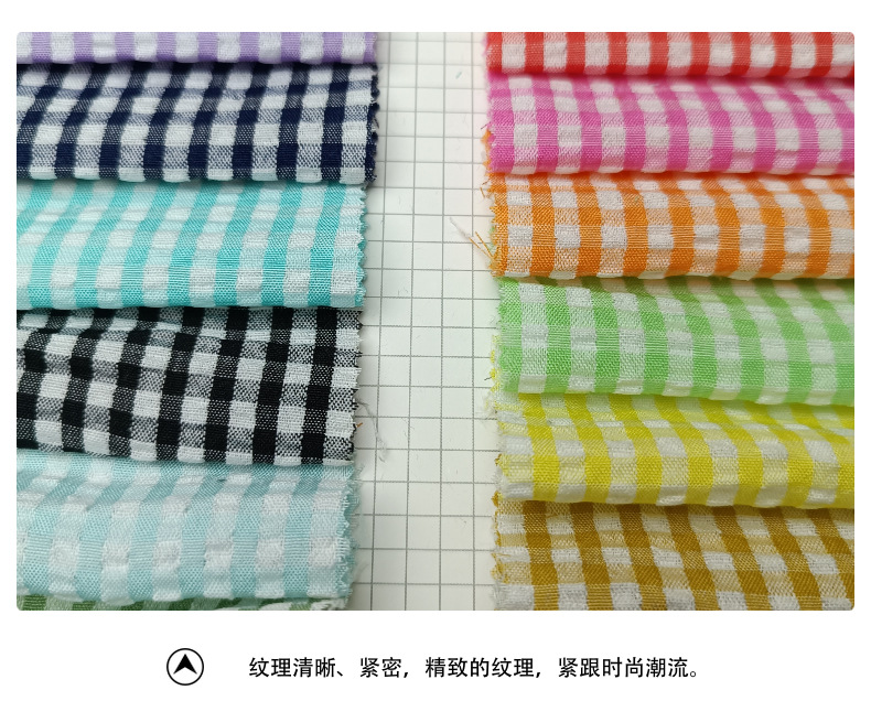 2mm3mm6mm10mm不同间距全涤色织泡泡纱朝阳格子面料裙装布料布匹