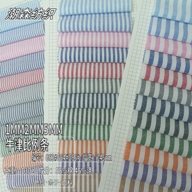 130g1MM2MM5MMCVC色織りストライプ生地 ポリエステル綿混紡オックスフォード生地 シャツ、スカート、靴、帽子、バッグ、衣料品用