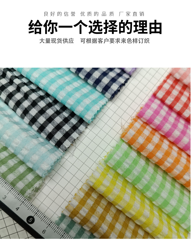 糖果色泡泡弹力皱格 女装童装箱包窗帘格子布料厂家直销现货批发
