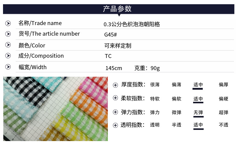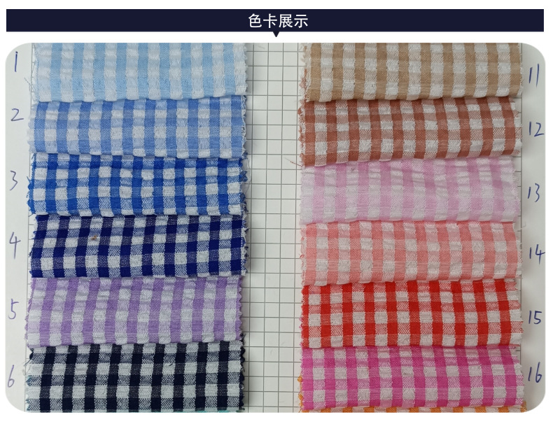 色织不同尺寸0.2cm0.3cm0.6cm1cm全涤泡泡纱格子衬衫连衣裙面料布