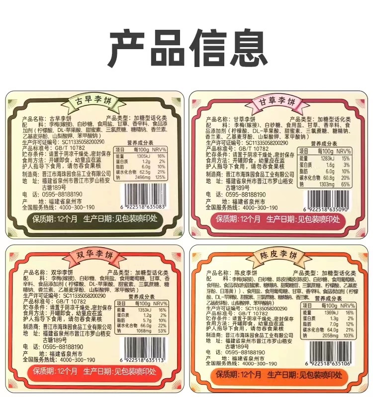 【口味】甘草李饼、陈皮李饼、古早李饼、双华李饼