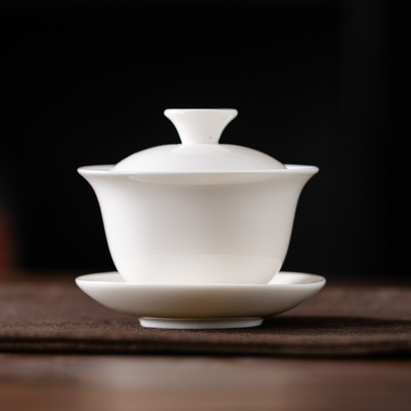 潮汕カンフー茶器純白羊脂玉三才蓋碗の大中小サイズのお茶碗のミニ試茶陶磁器敬茶