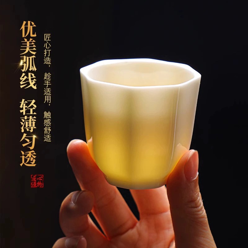 八角形来財主人杯羊脂玉磁器泡茶陶磁器品茗杯手作り白磁器工夫茶家庭品茗杯