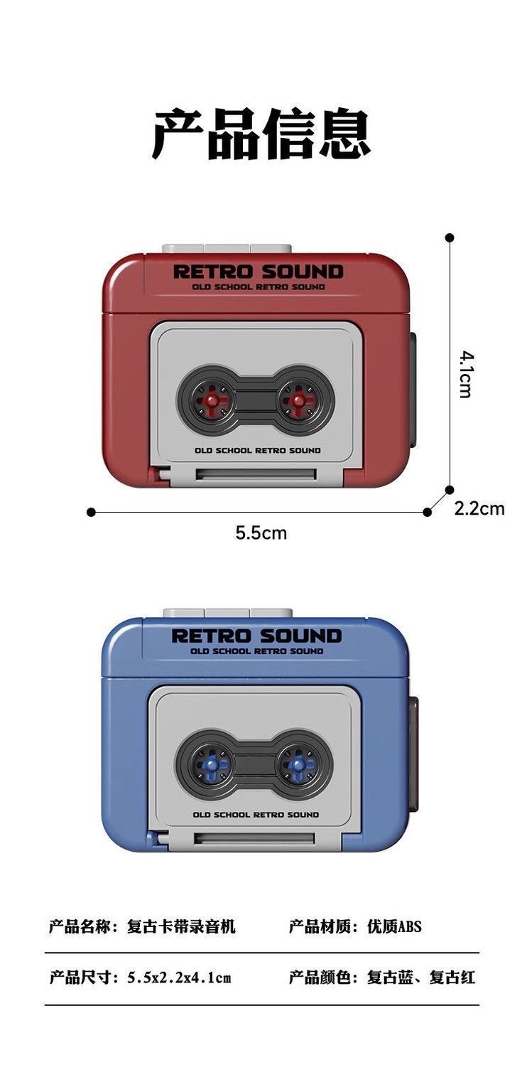 新款迷你复古录音机卡带可播放音乐录音趣味音乐盒小巧便携挂摆件