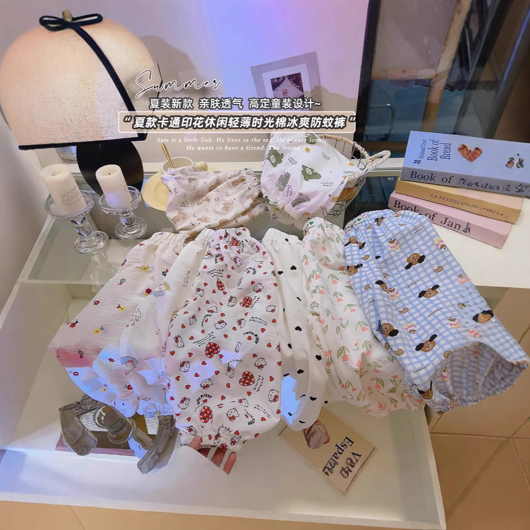 子供の夏の新しい雲の綿の防蚊のズボンのファッションの夏のタイプの男女の子供の赤ちゃんの漫画のレジャーの格子の家の服