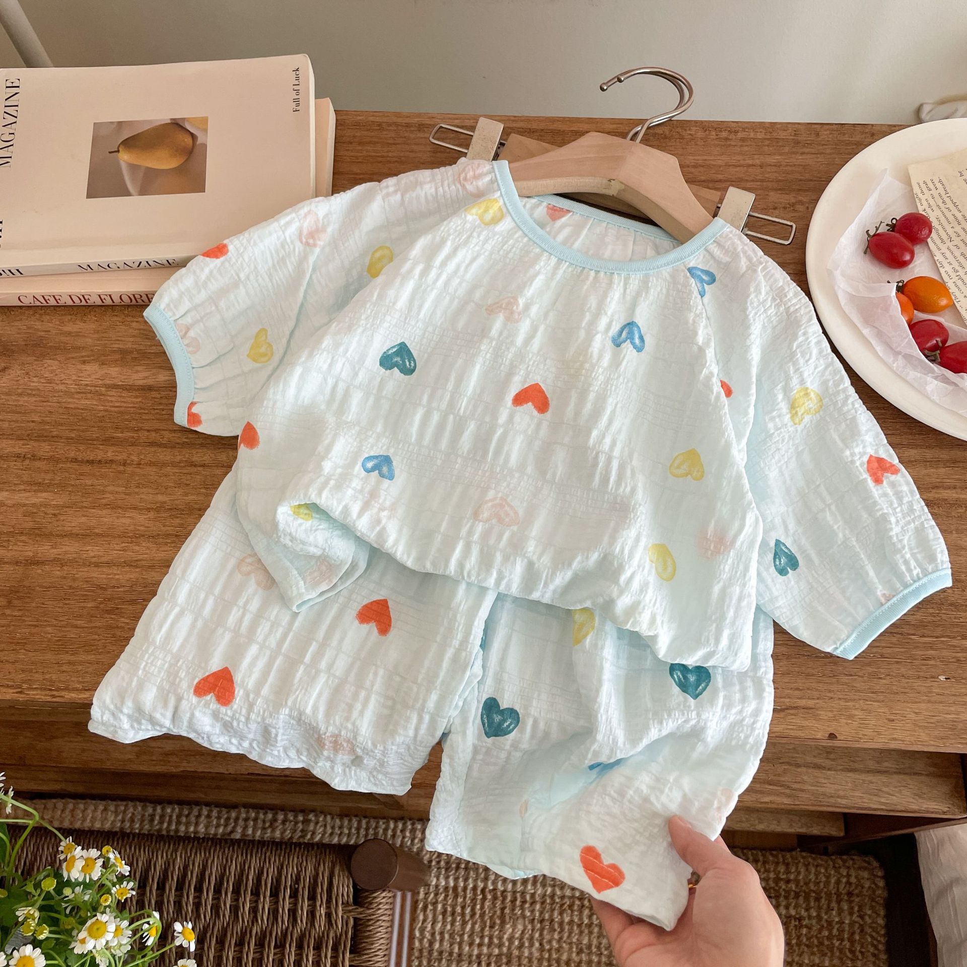 新しい子供用ホーム服、トレンディでクールなスタイル、新しい子供用ホーム、韓国風、外国風でかわいいスーツ、屋外で着用可能