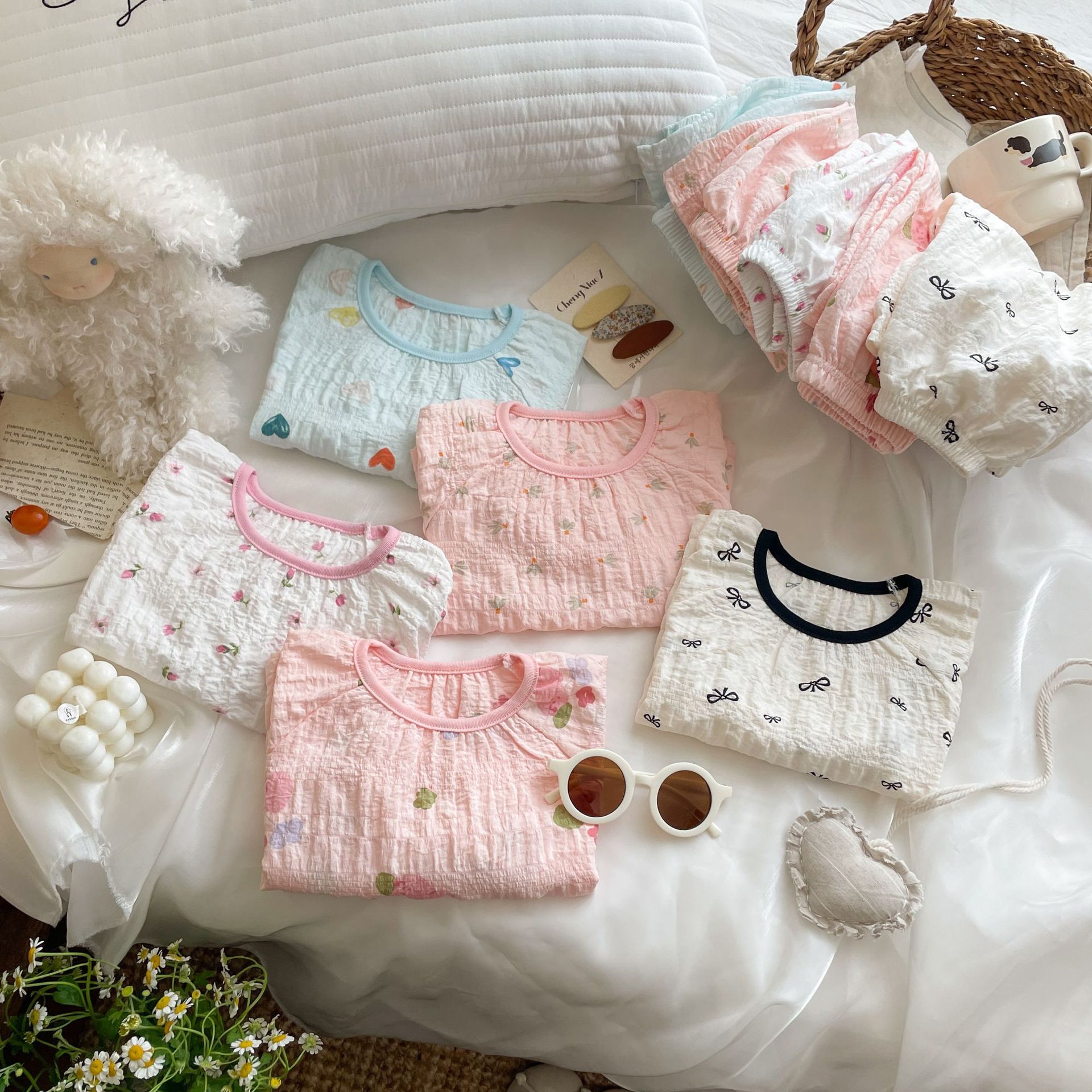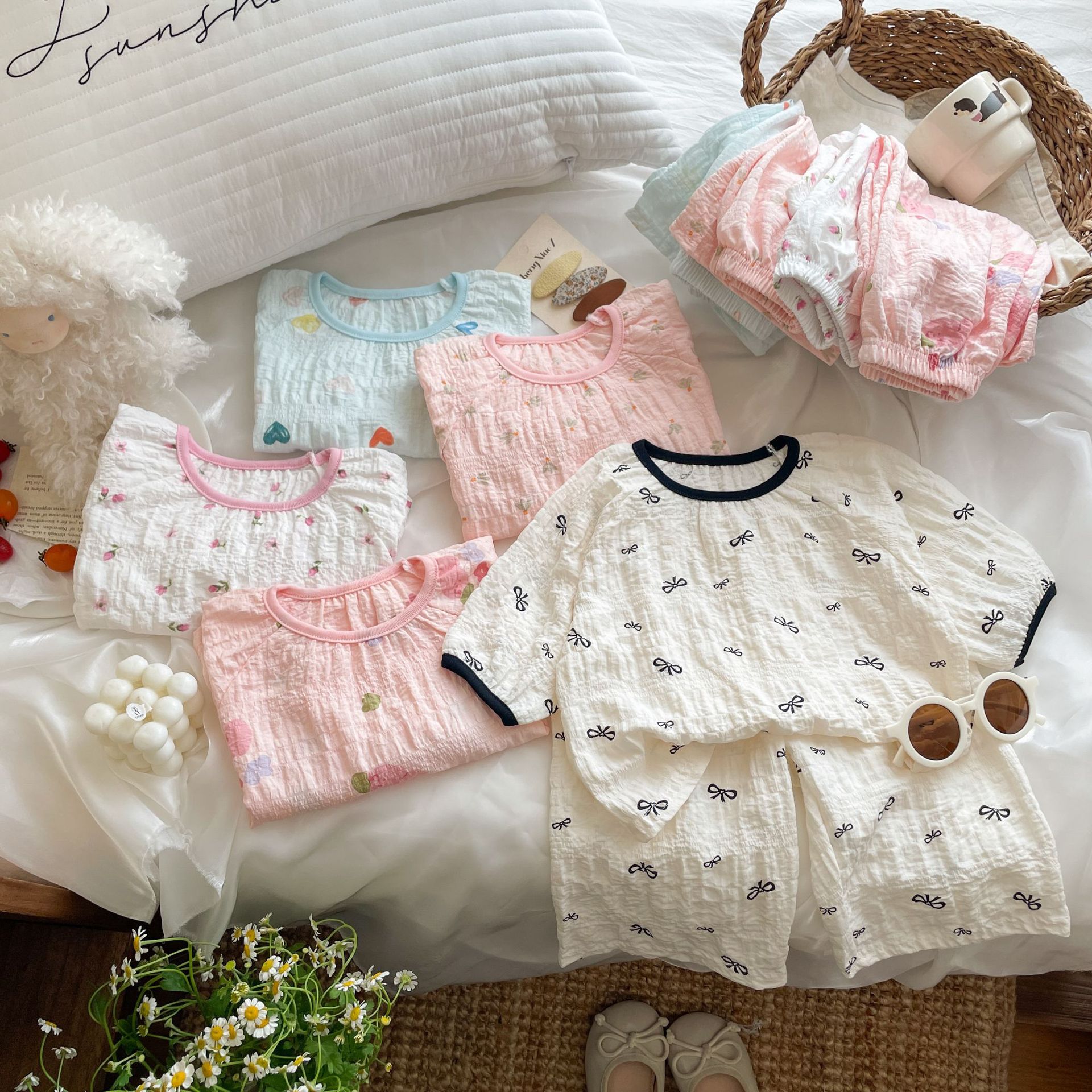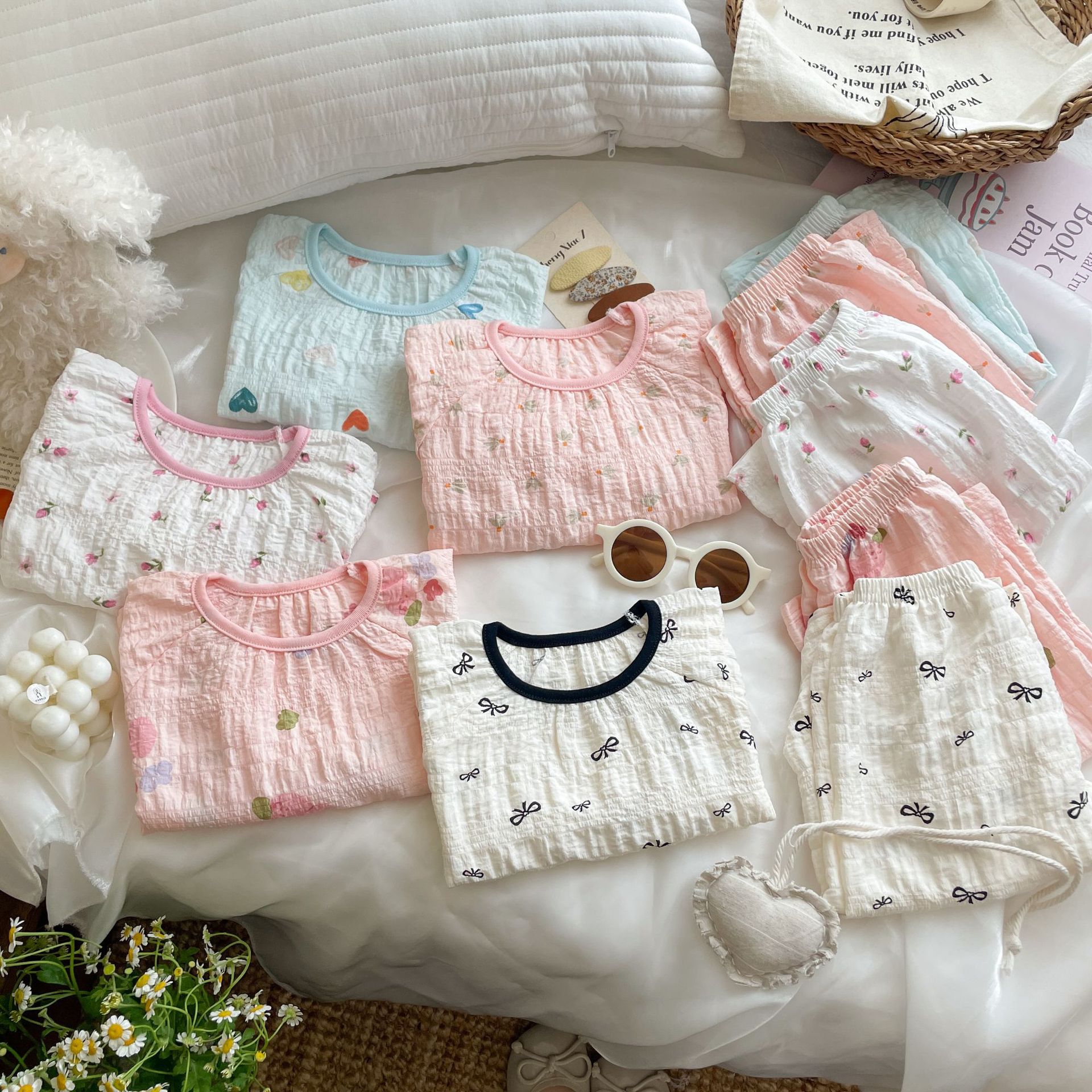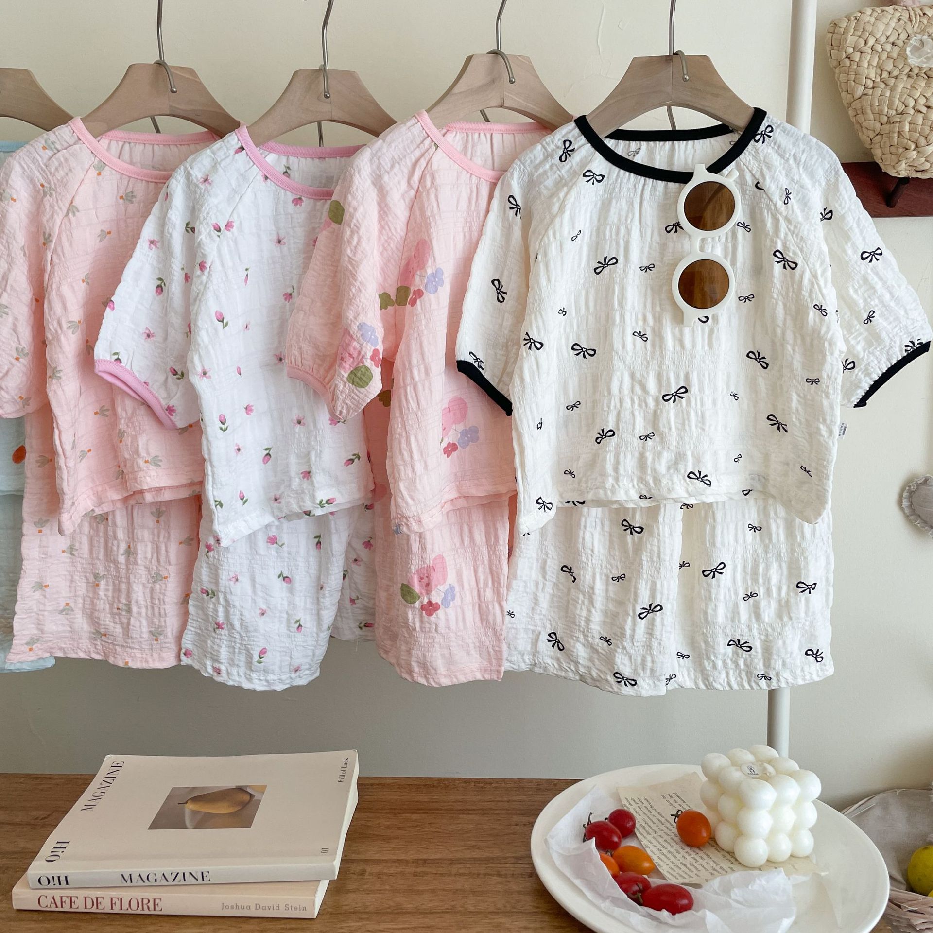 子供用パジャマセット 夏用 薄手 女の子用 かわいいホームウェア 半袖ショーツ 空調服 プリンセススタイル